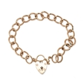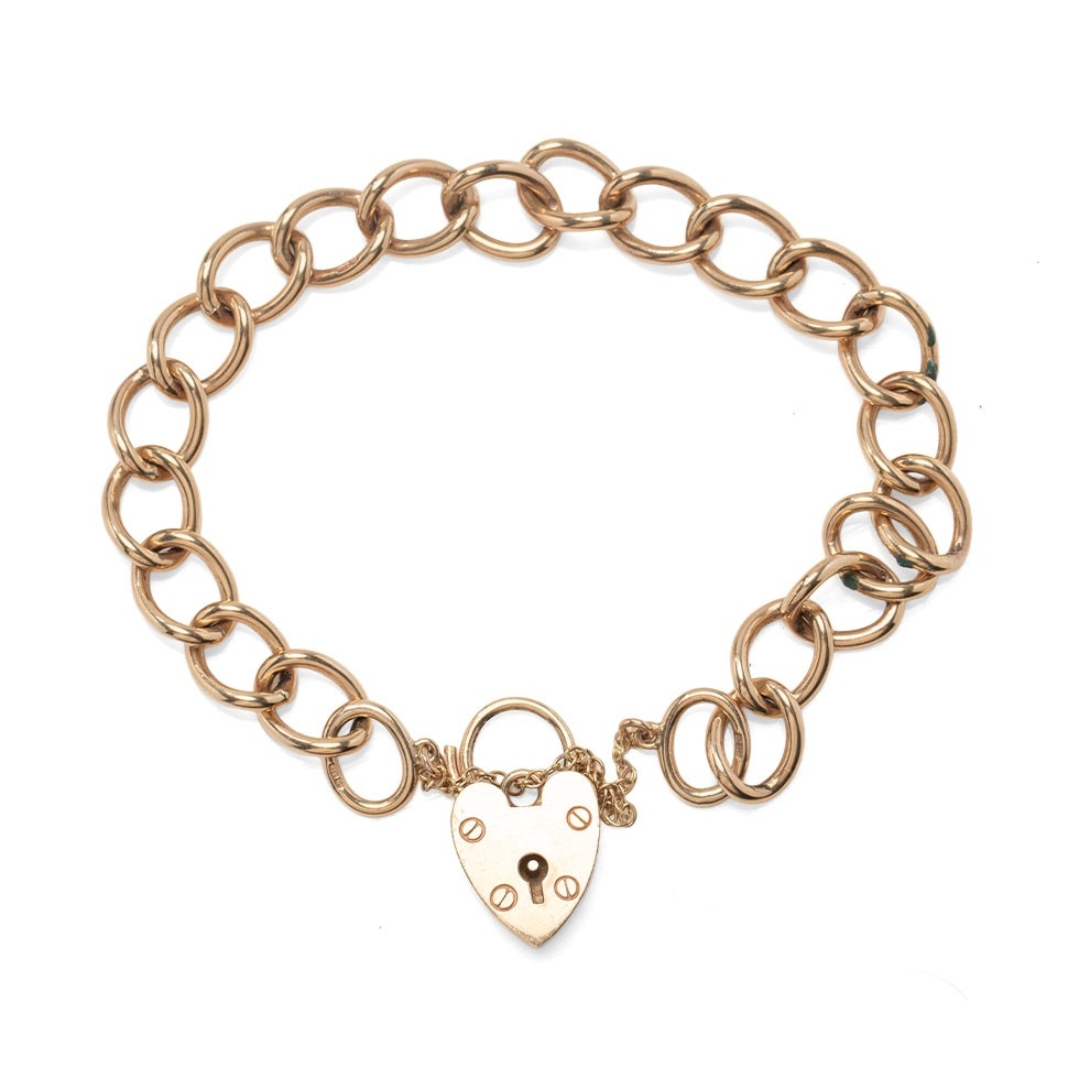 A 9ct gold open link bracelet with 9ct gold heart-shaped padlock catch, with safety chain, 20.2g.