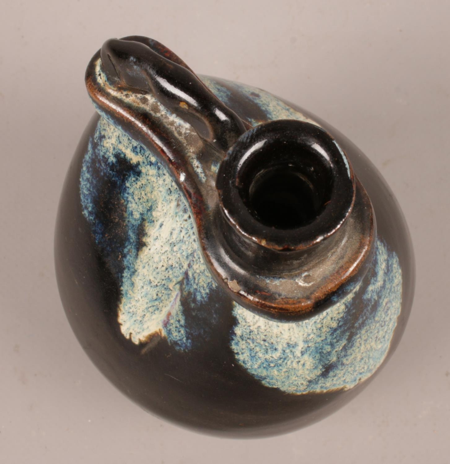 An antique Chinese phosphatic glaze vessel, possibly Tang dynasty. (Height 13cm).