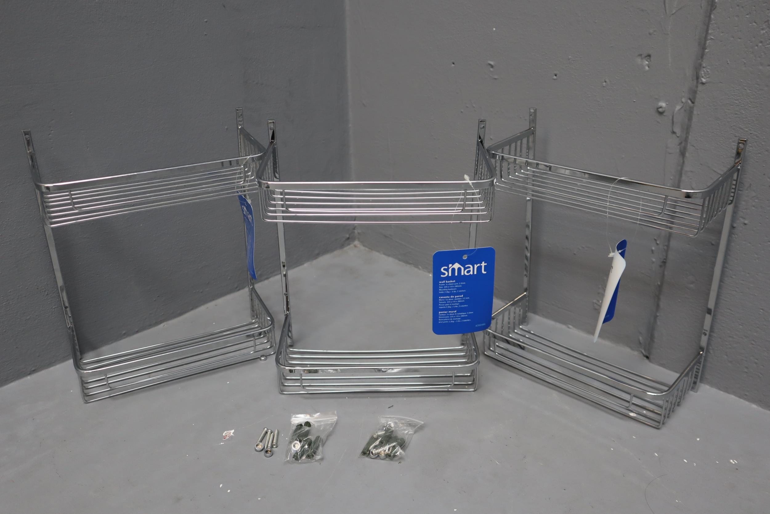 Three New Stainless Steel Kitchen or Bathroom Wall Storage Baskets