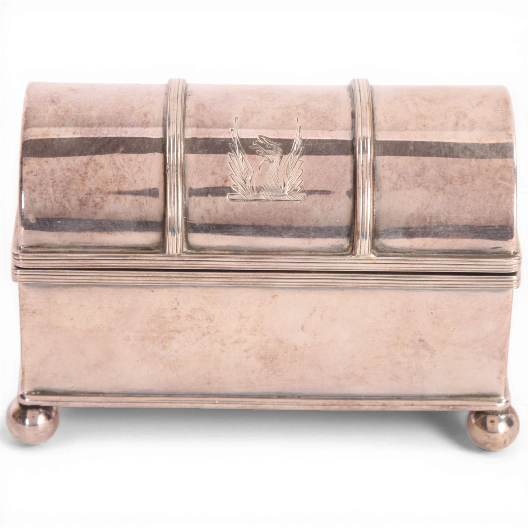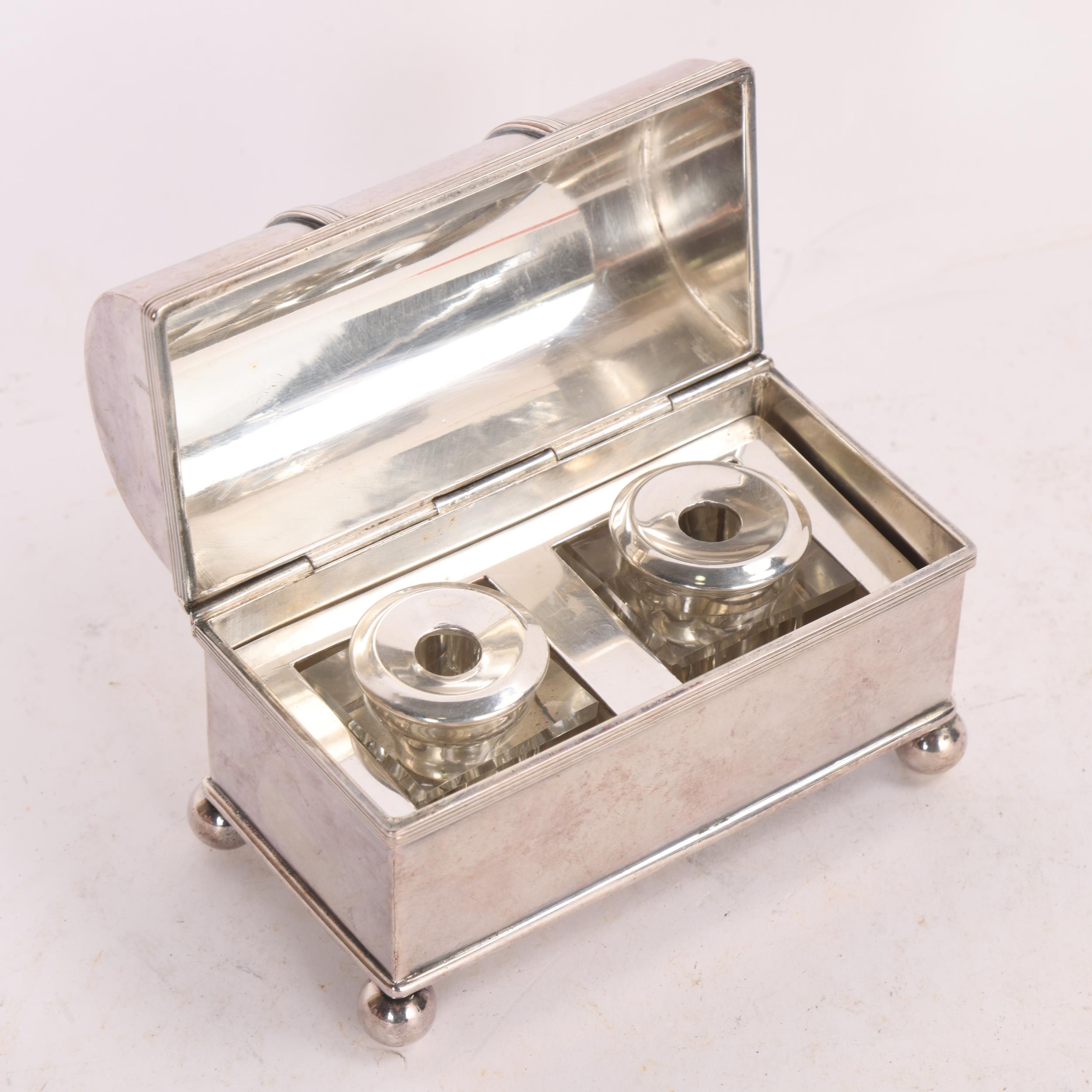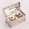 An electroplate inkwell, in the form of a dome-top casket, width 12cm