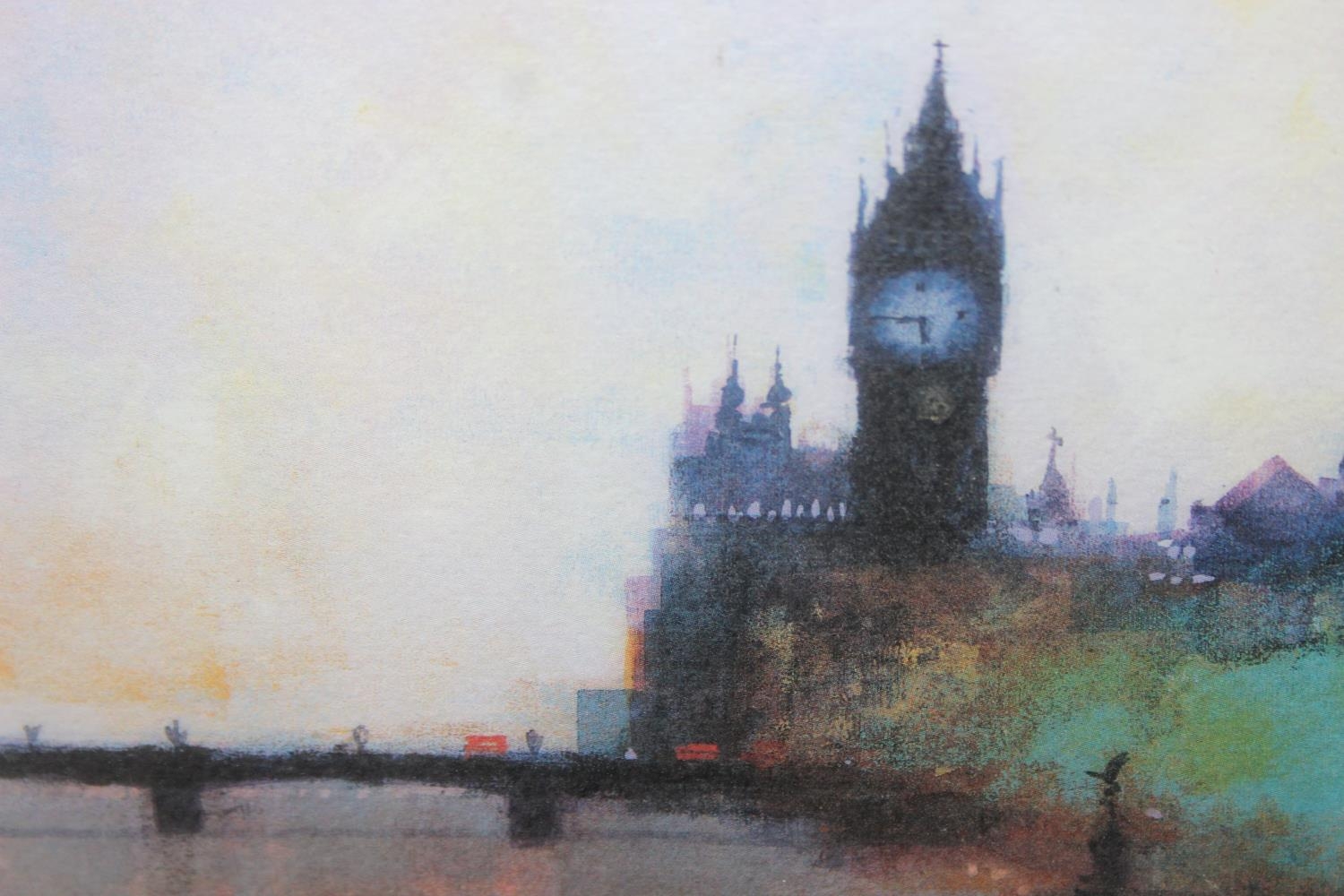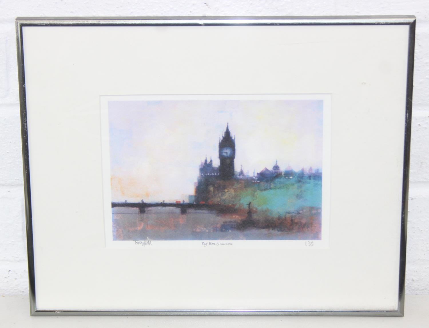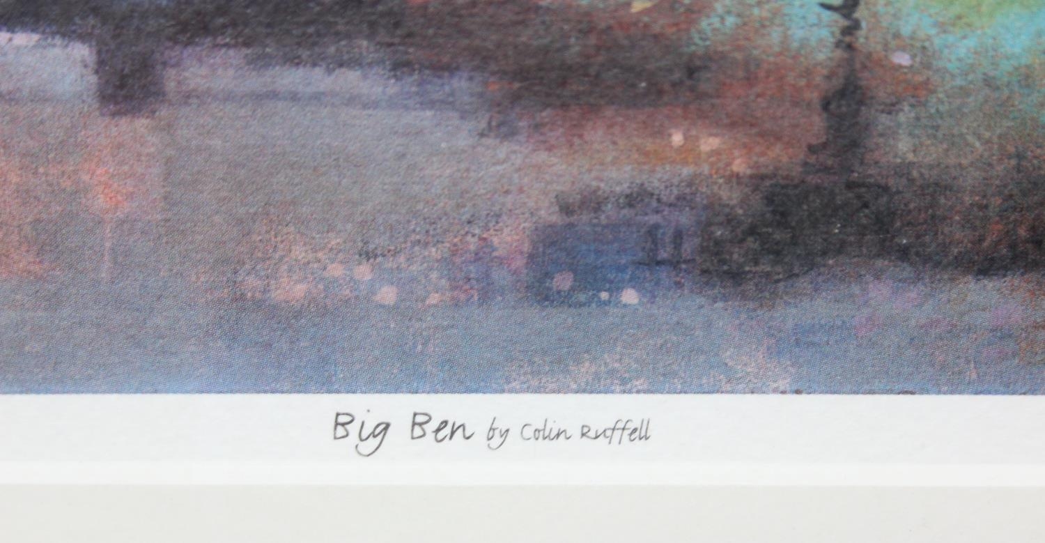 Colin Ruffel (British, b.1939) - two pencil signed prints of London scenes to inc Tower Bridge & Big Ben, both in brushed metal frame, each 34cm x 27cm [2]