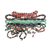 A VINTAGE 9CT GOLD AND AMETHYST NECKLACE AND EARRINGS SET