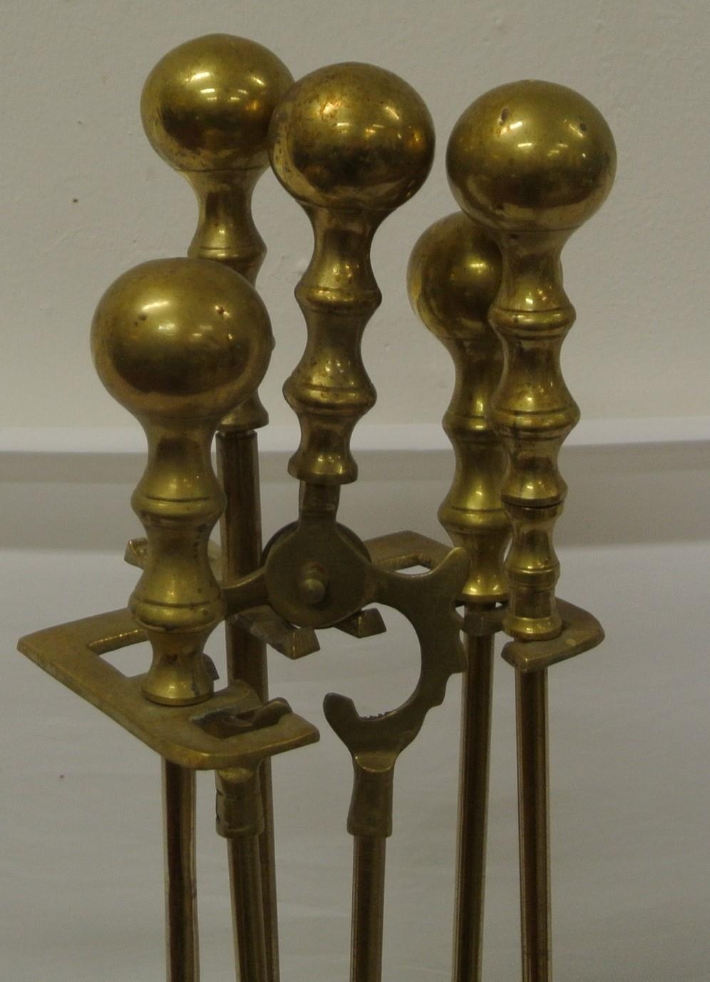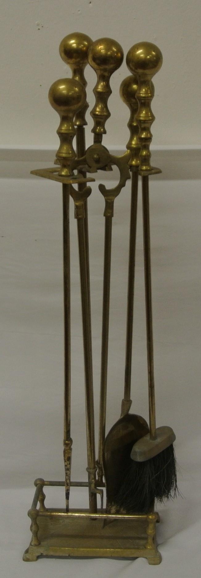 Victorian design companion set on stand with ball tops and railed base