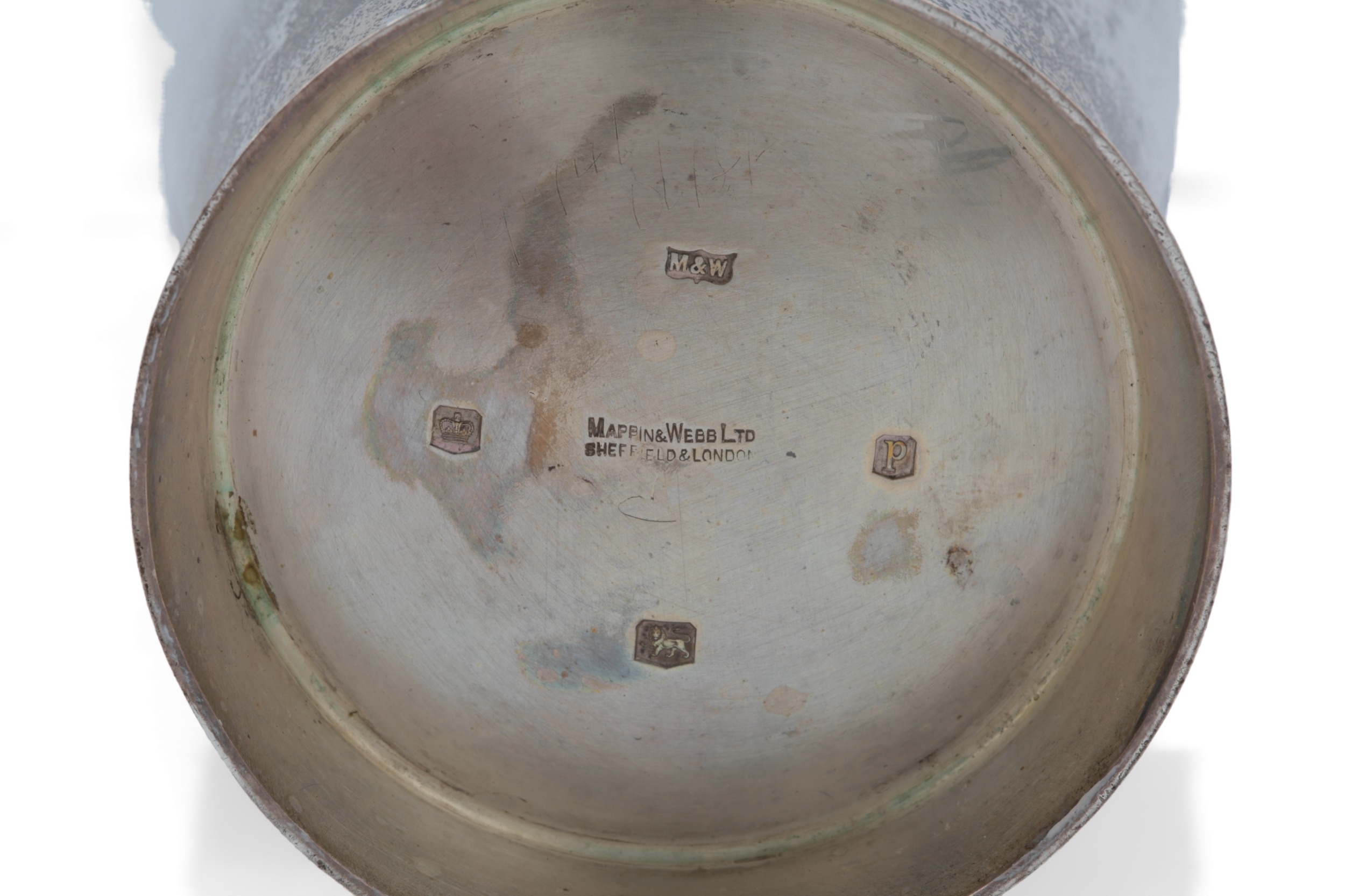 A George V Art Deco silver cocktail shaker with cover by Mappin & Webb, with stepped cover and shoulders and reeded border and foot, Sheffield, 1932, height 24cm, 17.6oz.