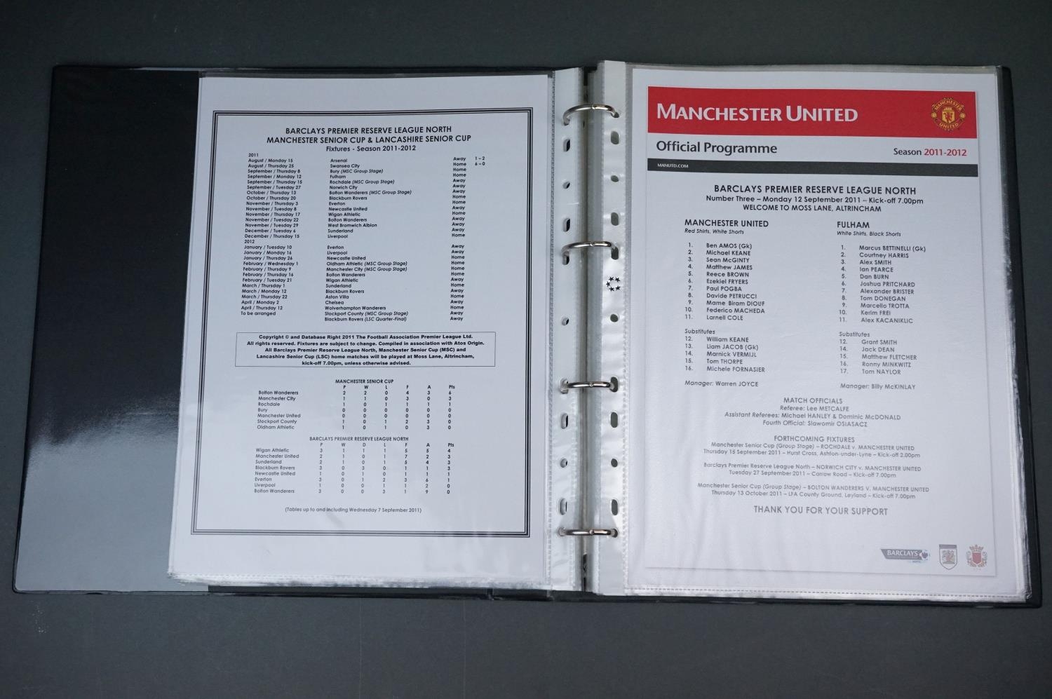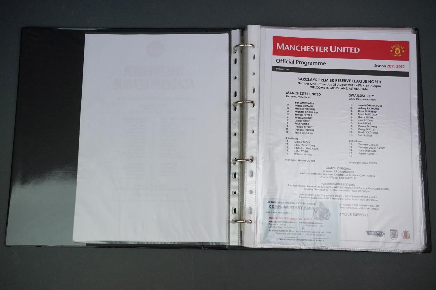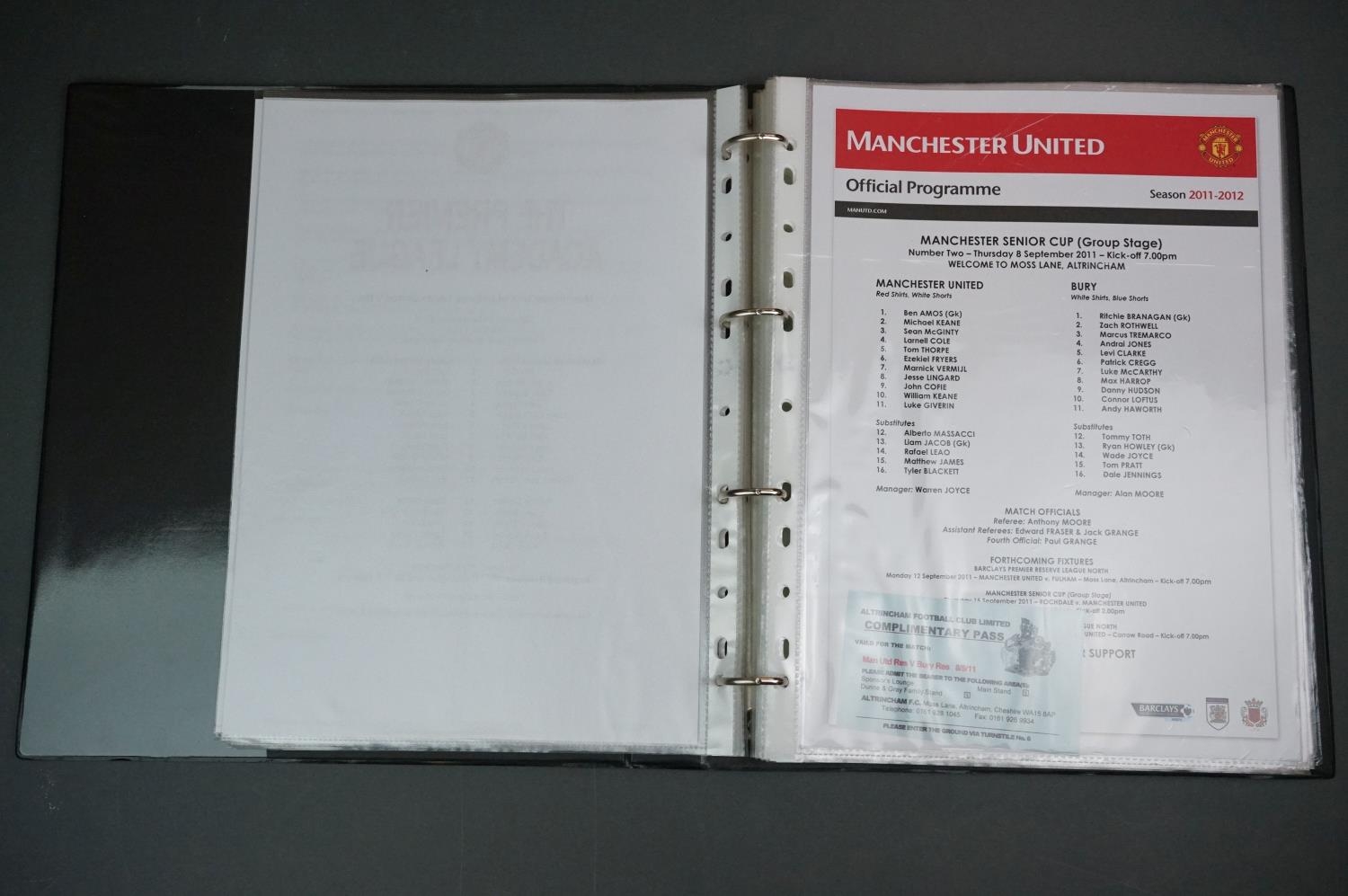 Football - Manchester United fc reserve and youth teams 2011/12, a binder containing approx. 50 home & away programmes, some with tickets, gen vg