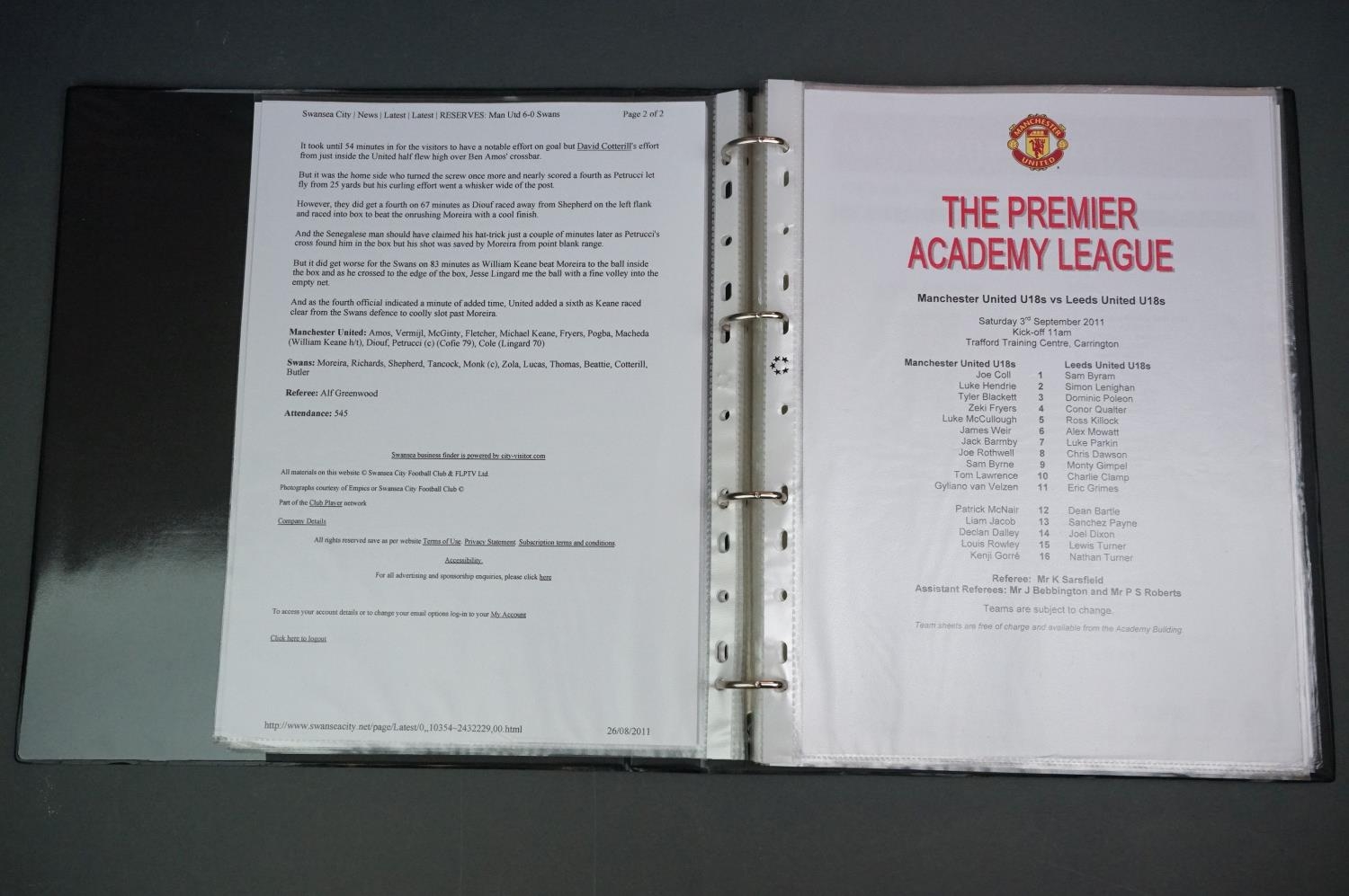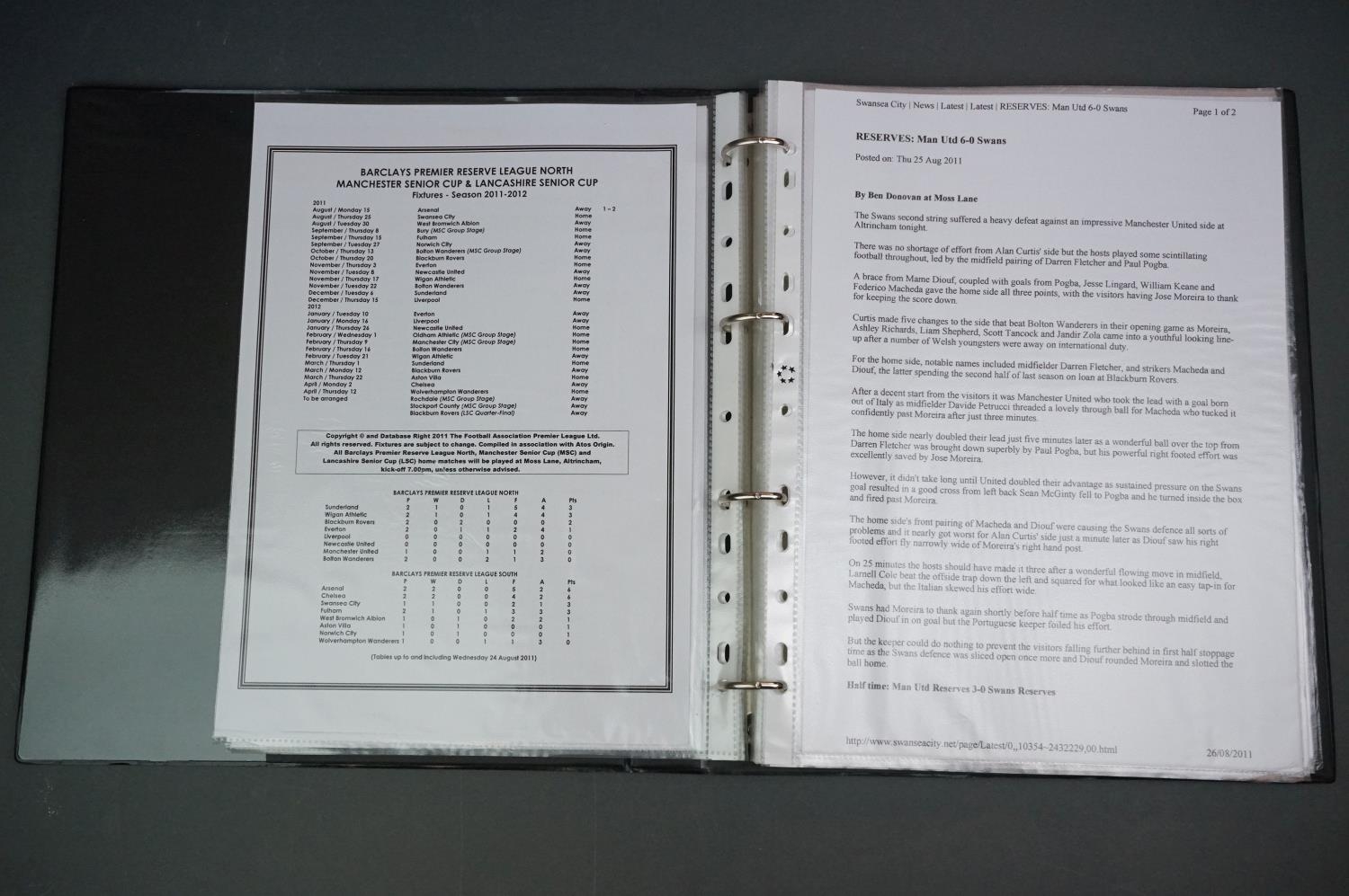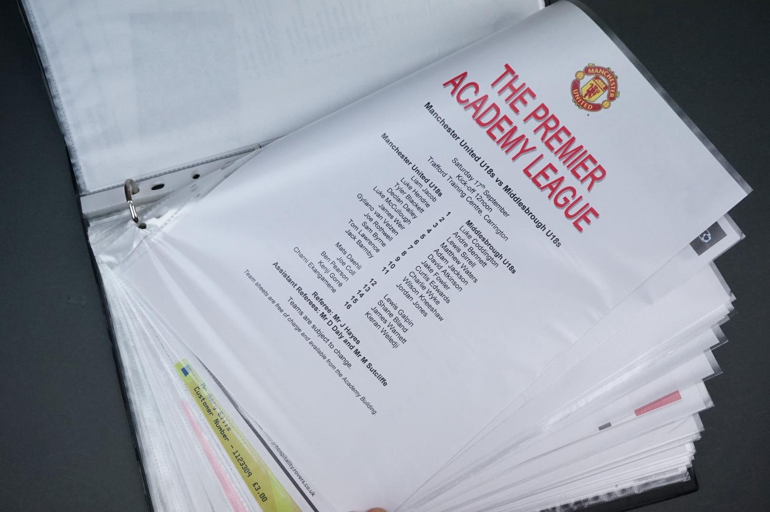 Football - Manchester United fc reserve and youth teams 2011/12, a binder containing approx. 50 home & away programmes, some with tickets, gen vg