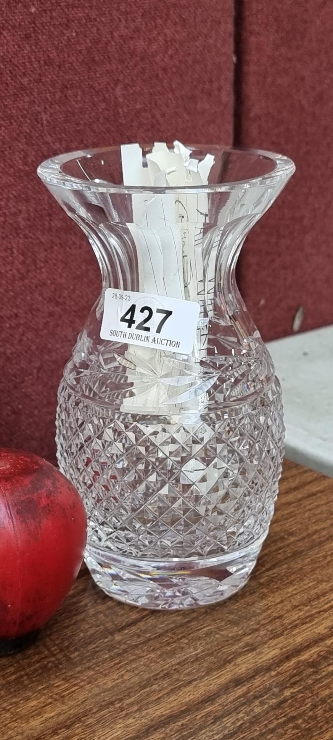 A wonderful Waterford Crystal vase in the Glandore pattern. In great condition with acid mark to base.