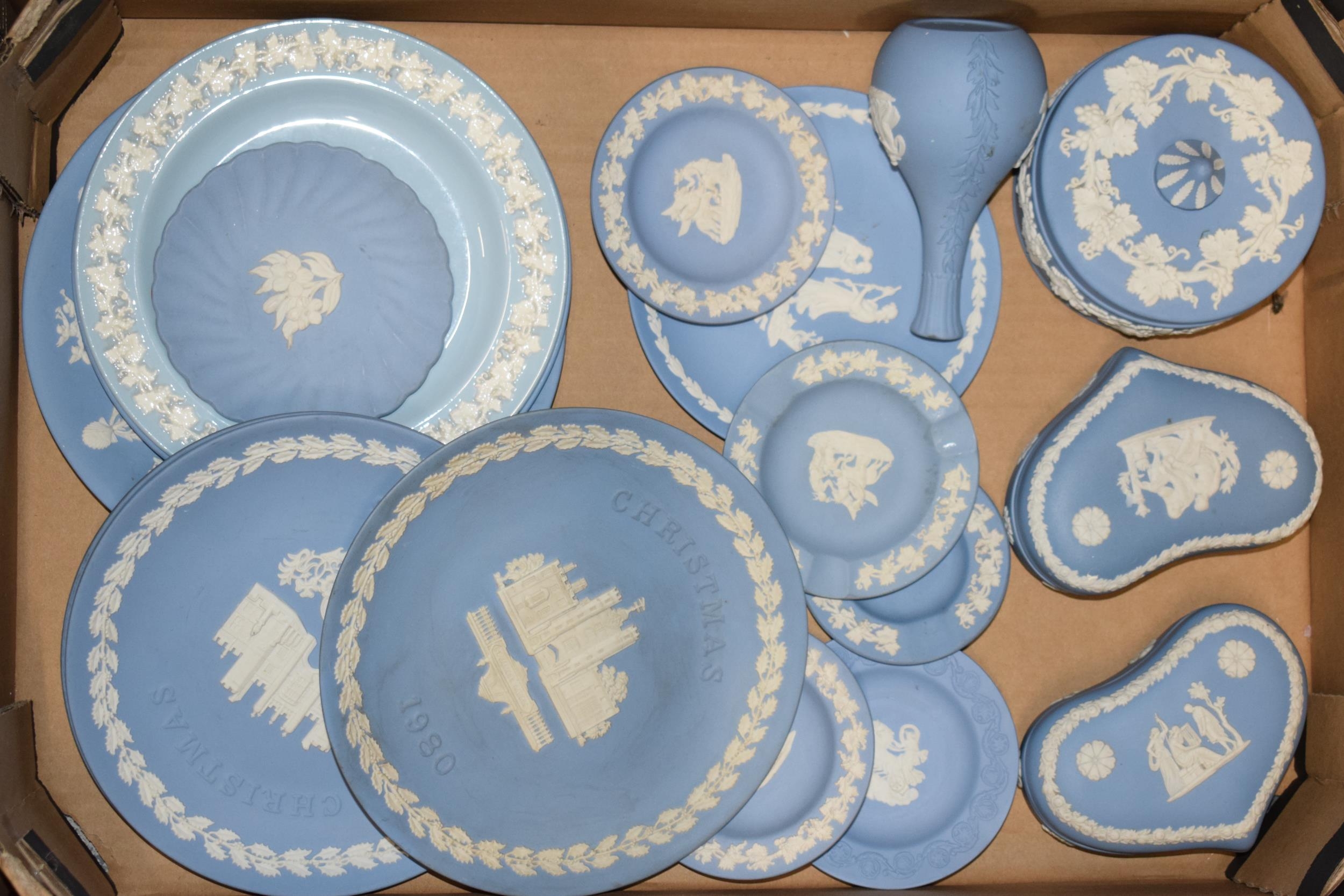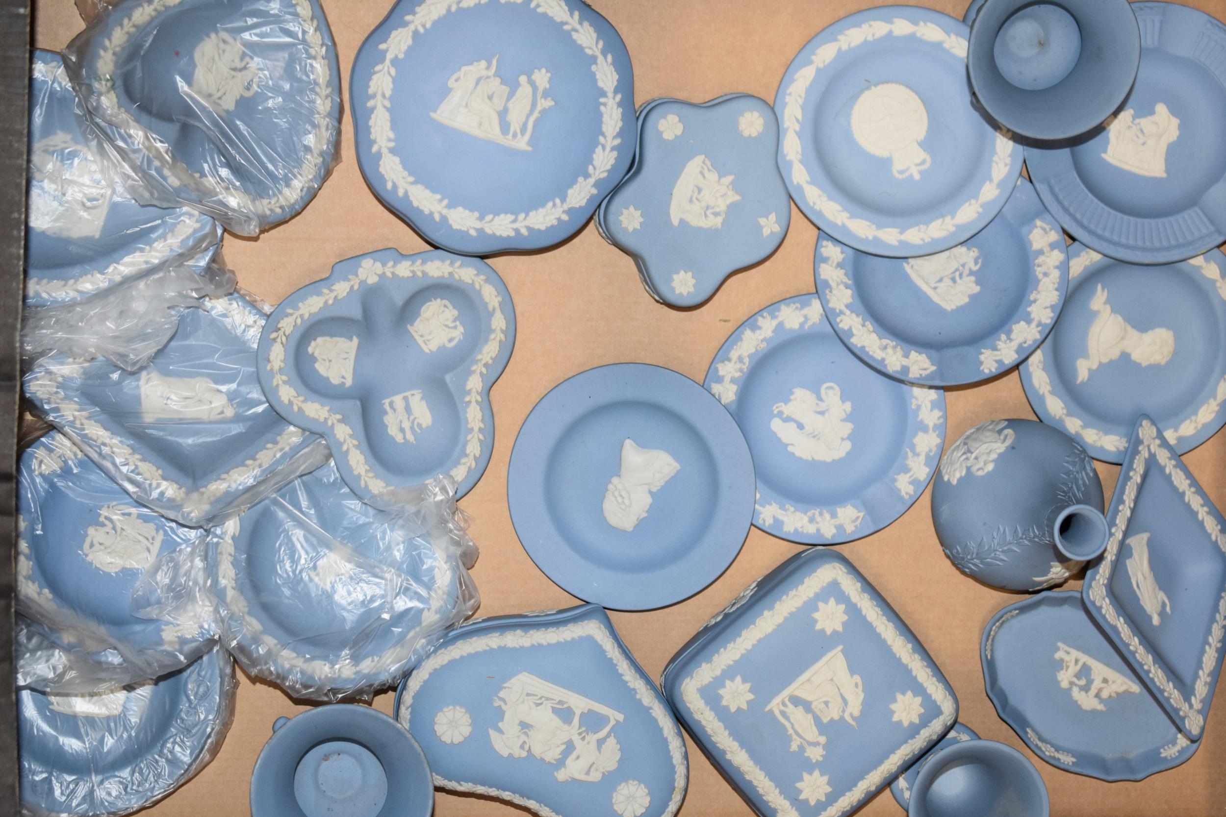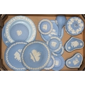 Wedgwood Jasperware in light blue to include vases, plates, pin dishes, trinkets and others (40+ pieces).