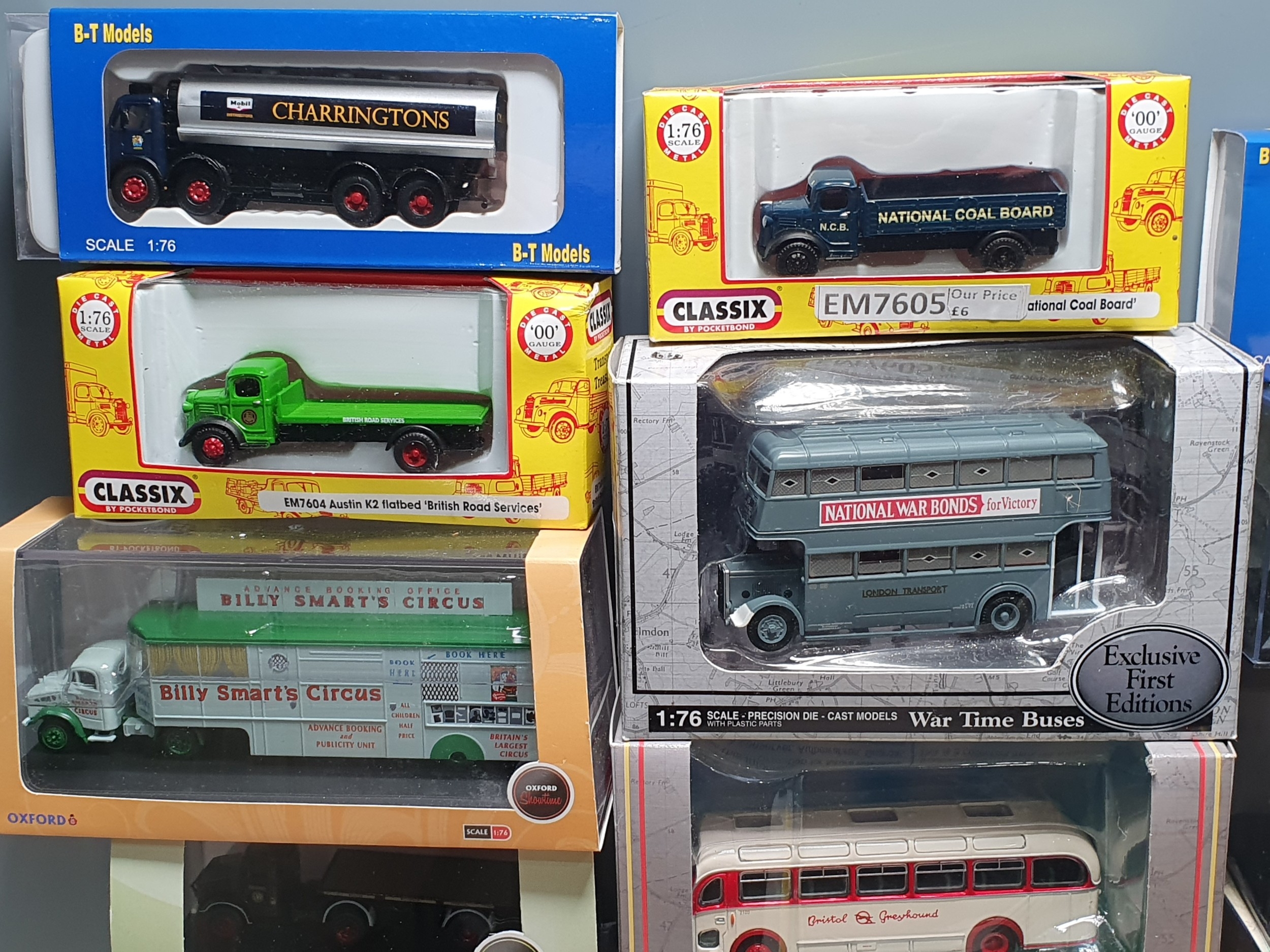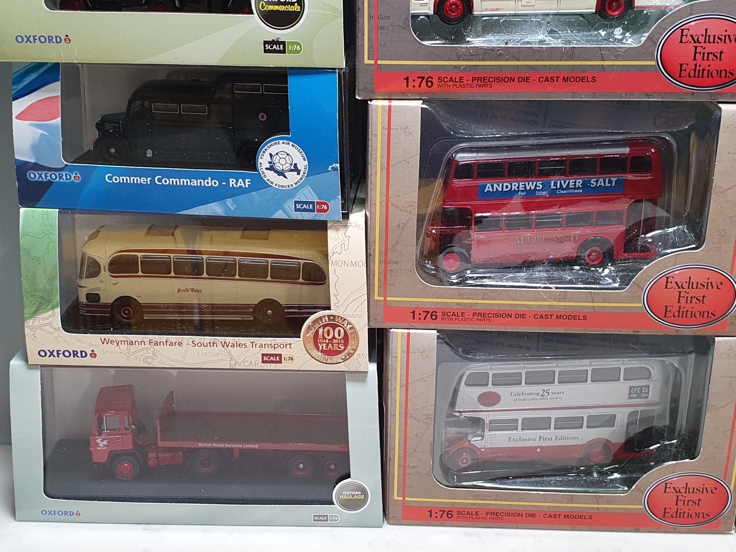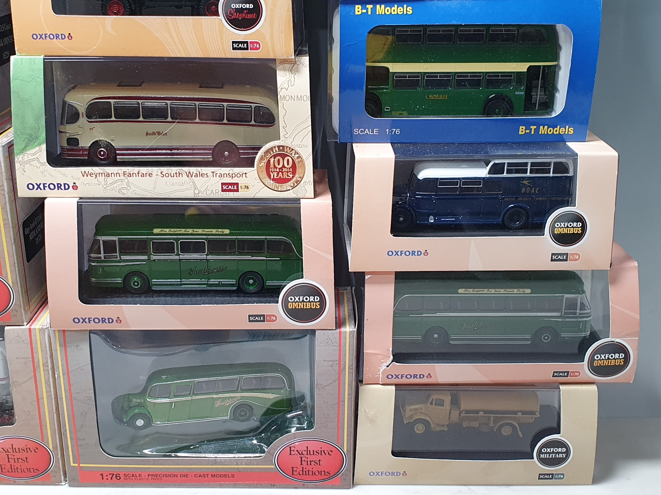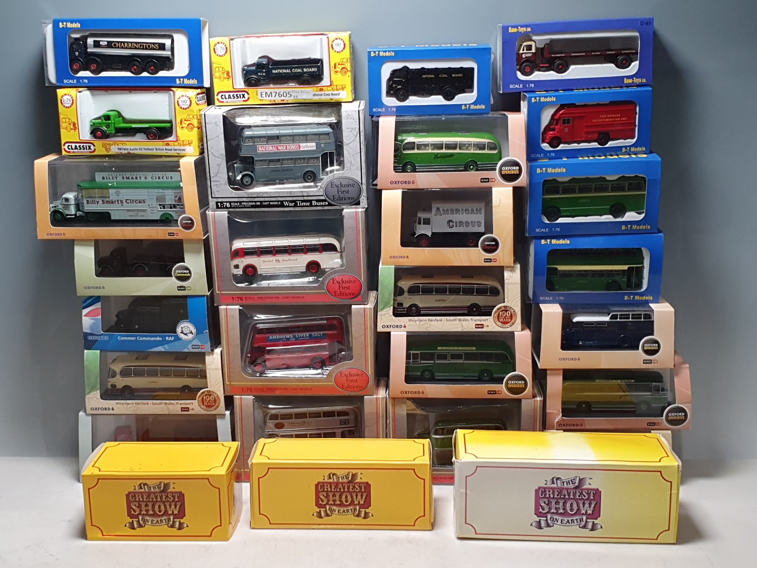 Approximately thirty boxed 1:76 scale lineside Vehicles including Oxford Diecast, Base Toys Models and Exclusive First Editions, suitable for the 00 gauge railway layout