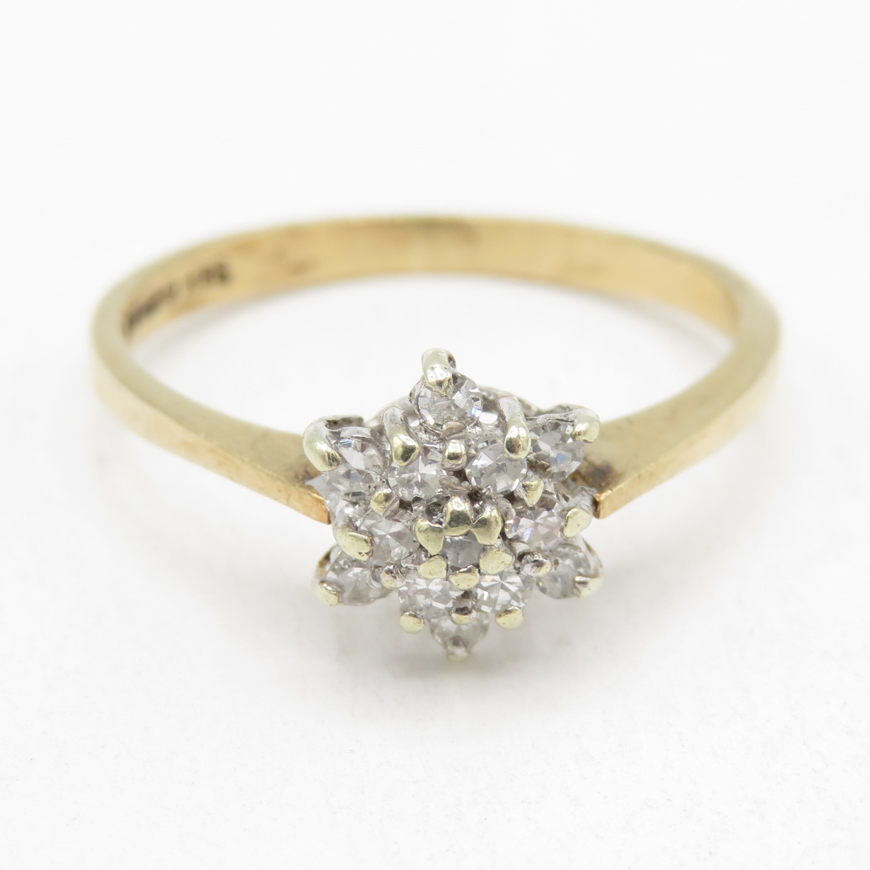 9ct gold diamond floral cluster ring (1.7g) size N