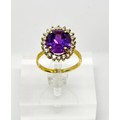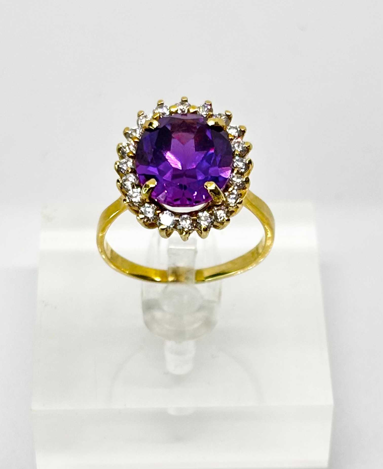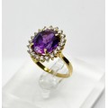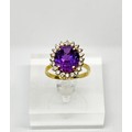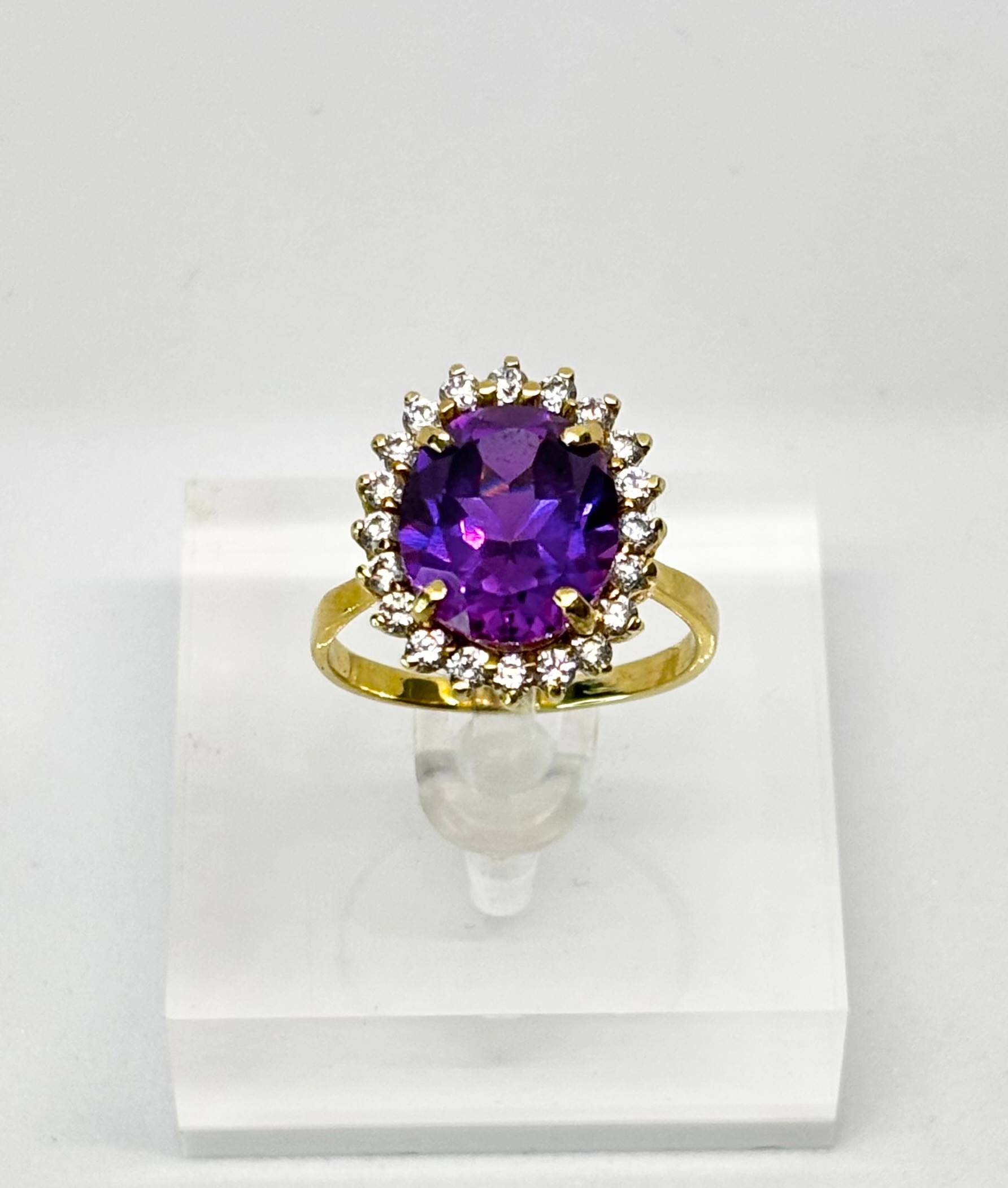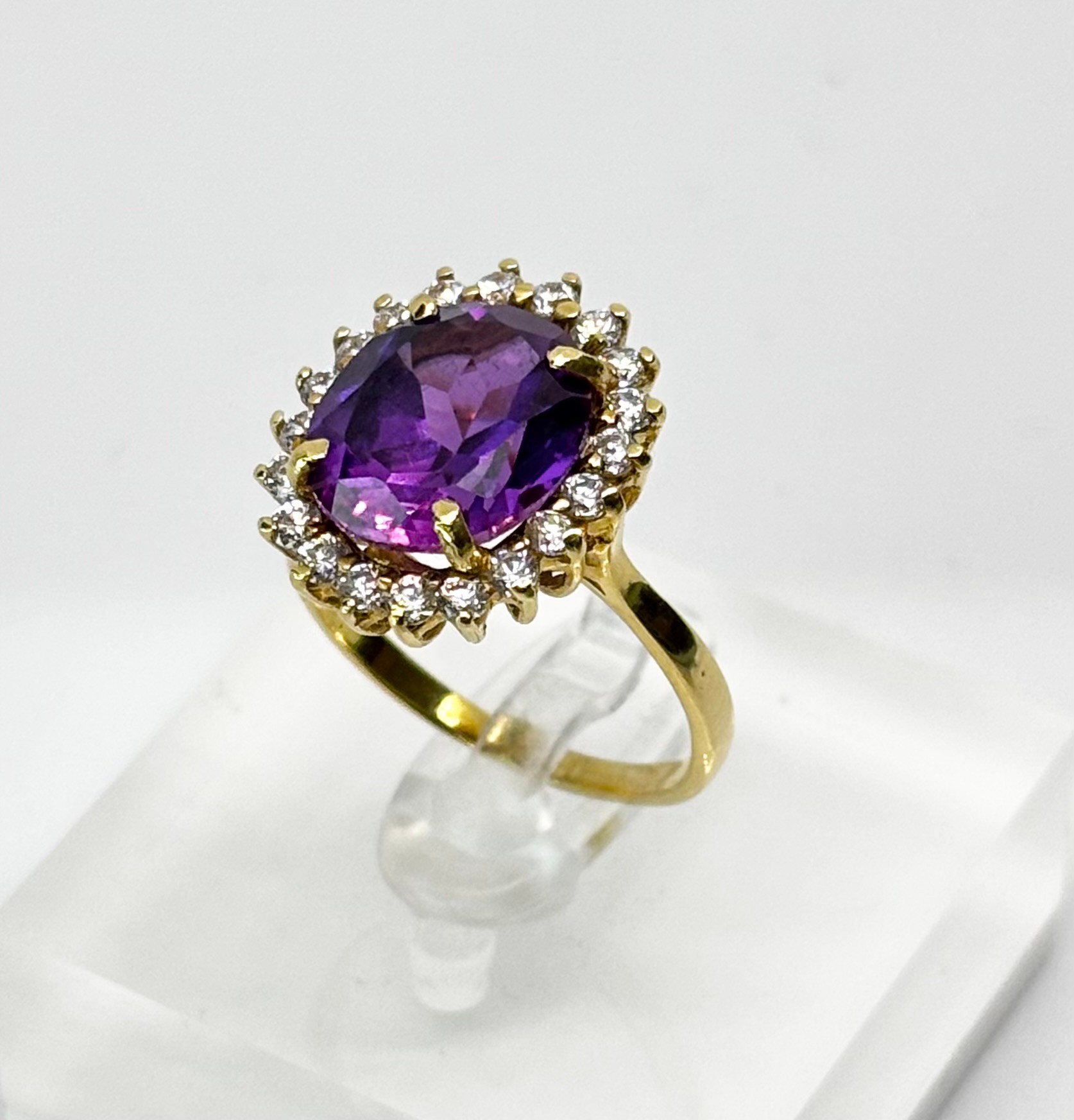 18ct Gold oval cut Amethyst and cubic zirconia ladies ring Size - QWeight - 5.68g