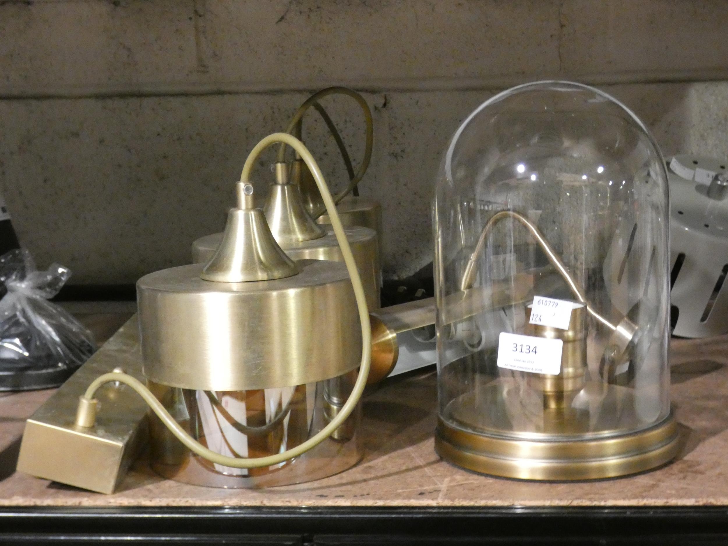 A brushed gold effect 3-way drop pendant light and a domed glass table lamp * this lot is subject to VAT