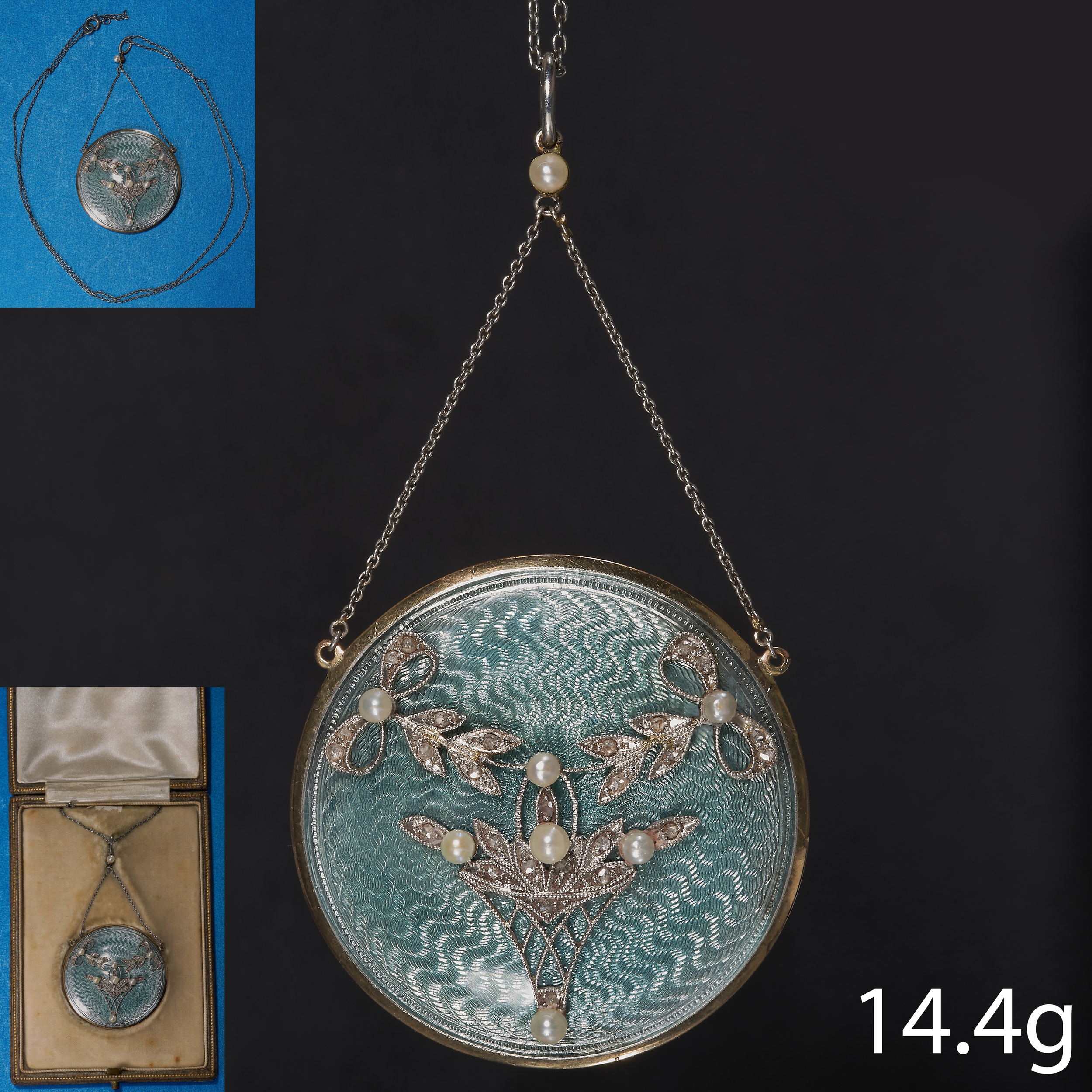 EDWARDIAN ENAMEL PEARL AND DIAMOND PENDANT,