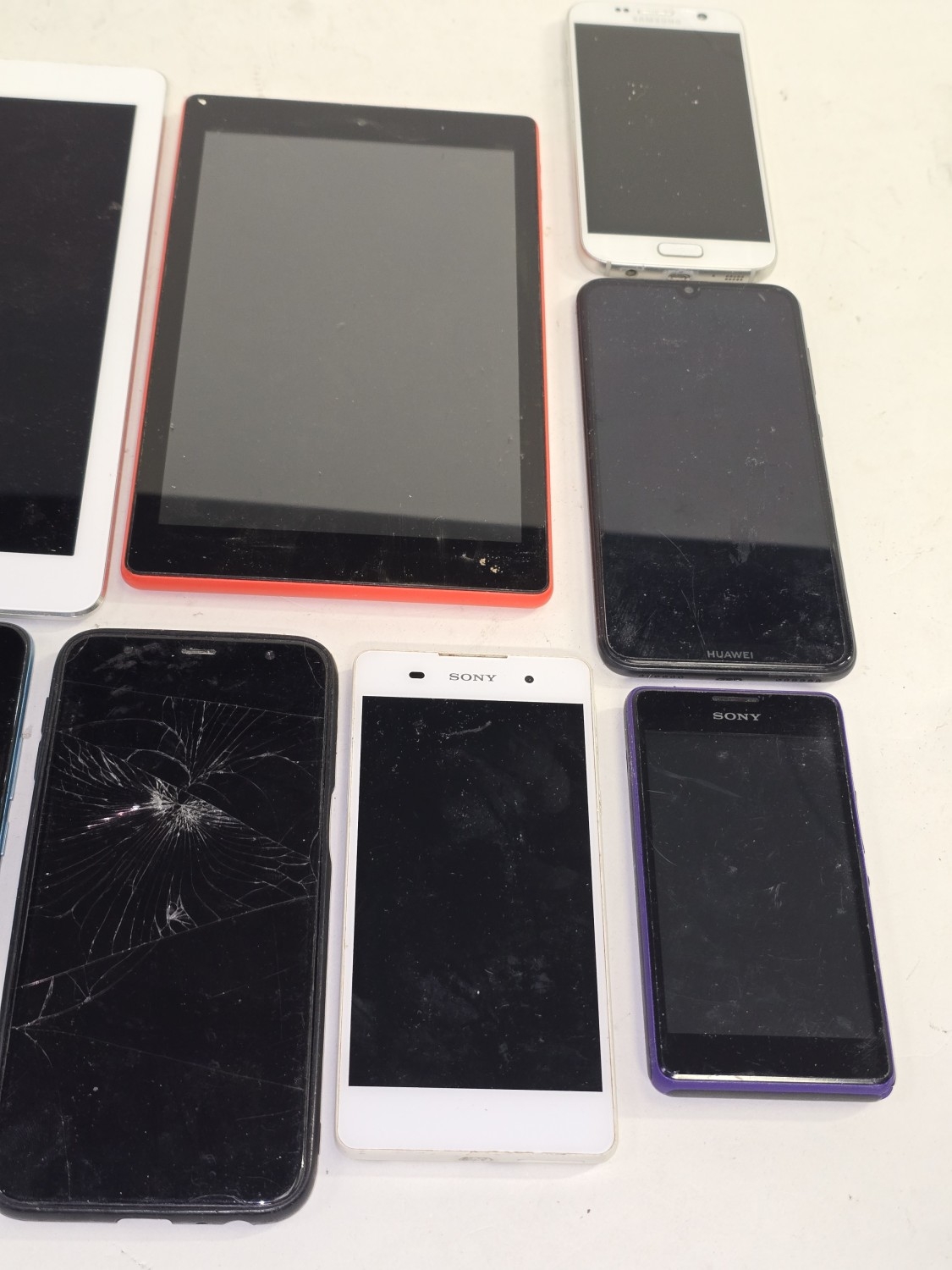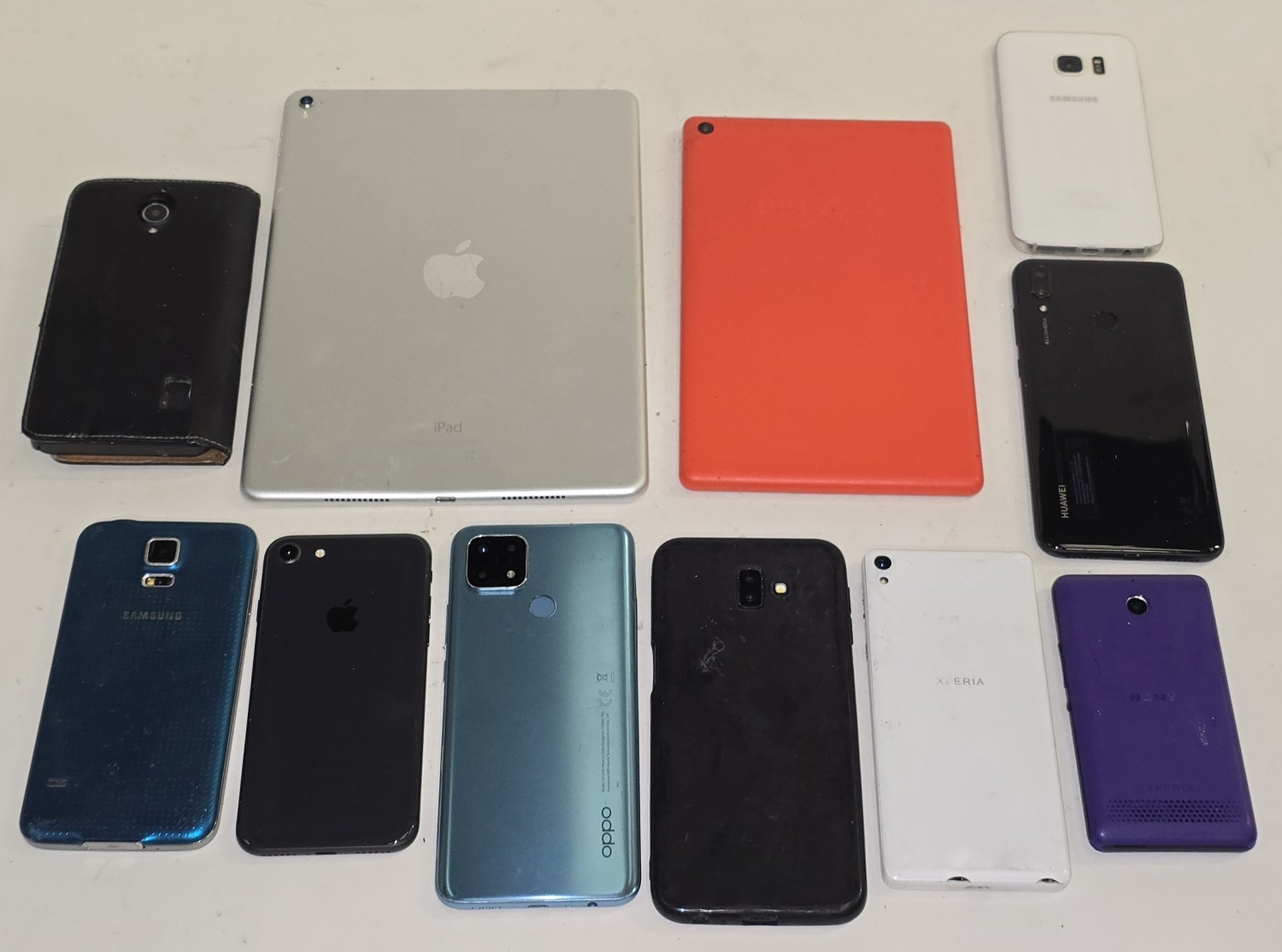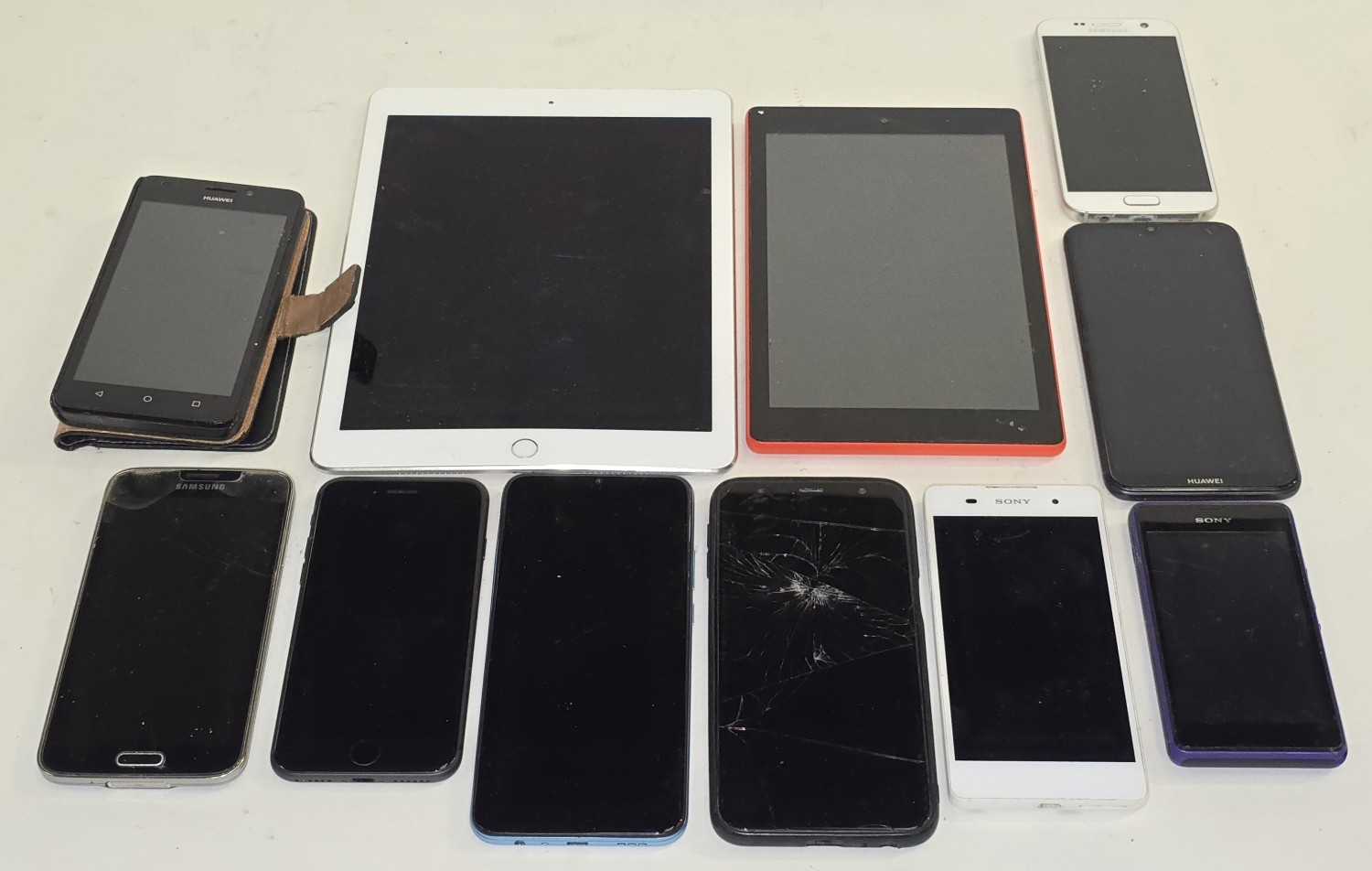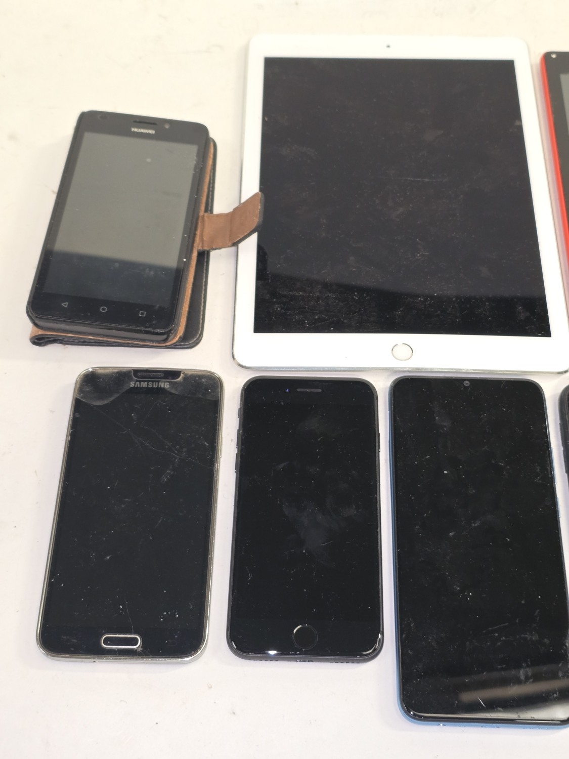 A quantity of tablets and smartphones to include Apple and Samsung. 11 in total.