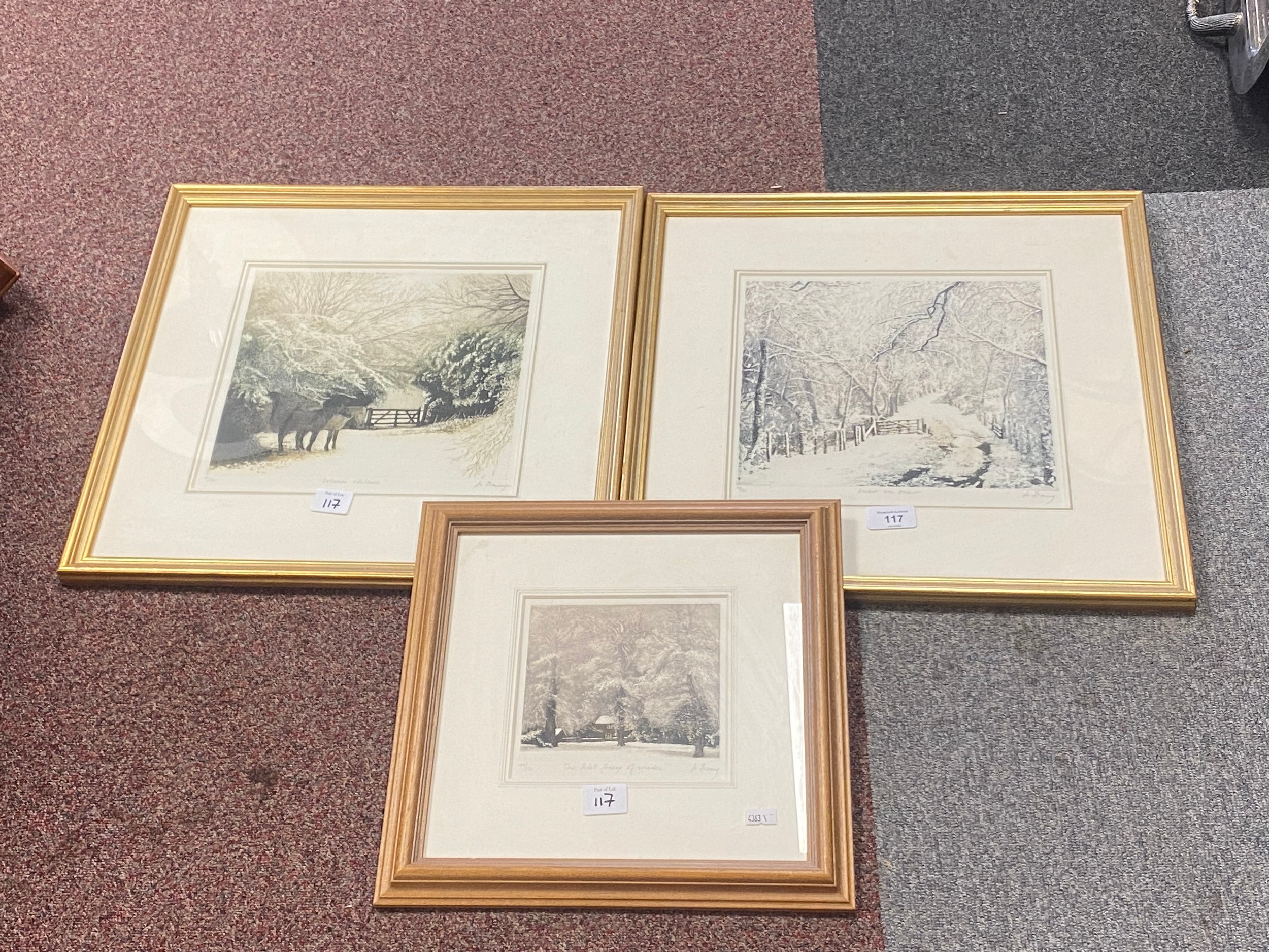 'Snow on Snow', 'Solemn Stillness' and 'The First Fruits of Winter', three signed prints -