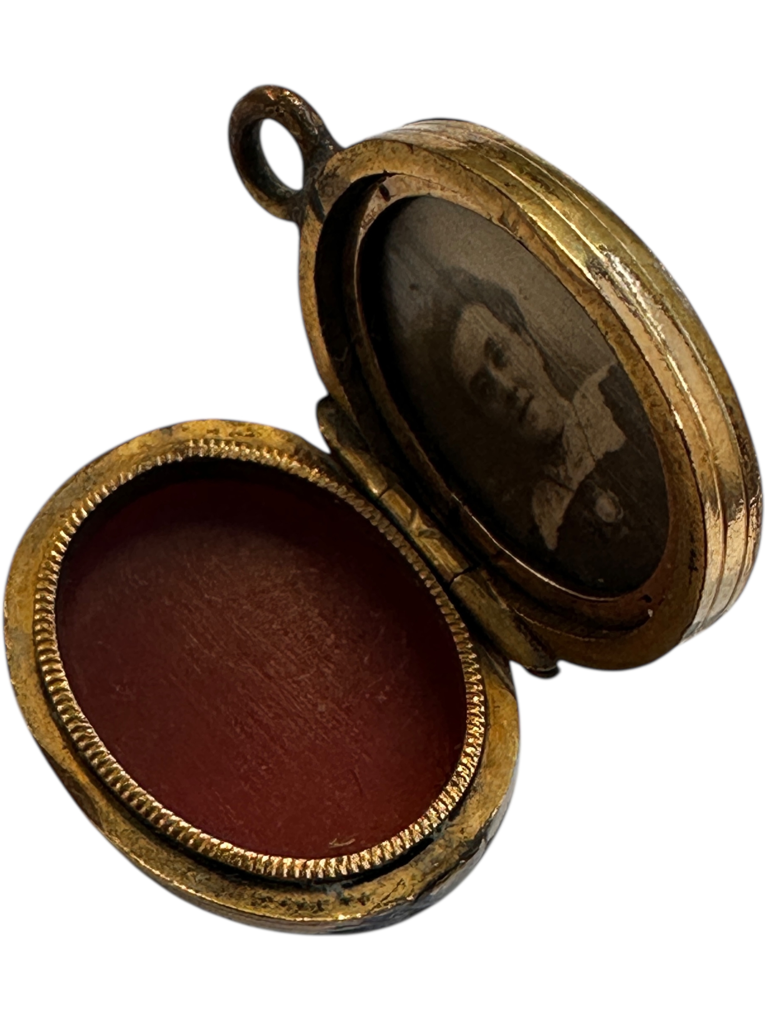 Antique Mourning Locket Pendant with Carnelian Front & Gold back