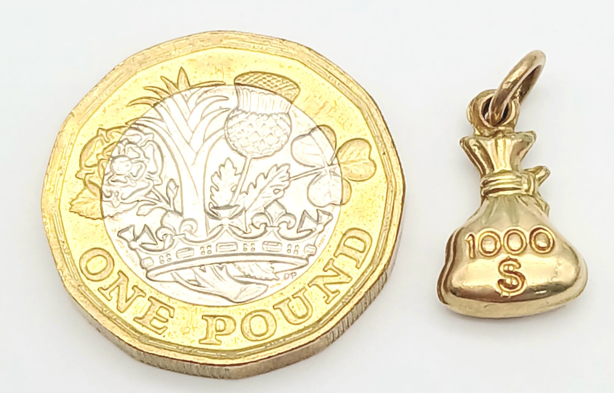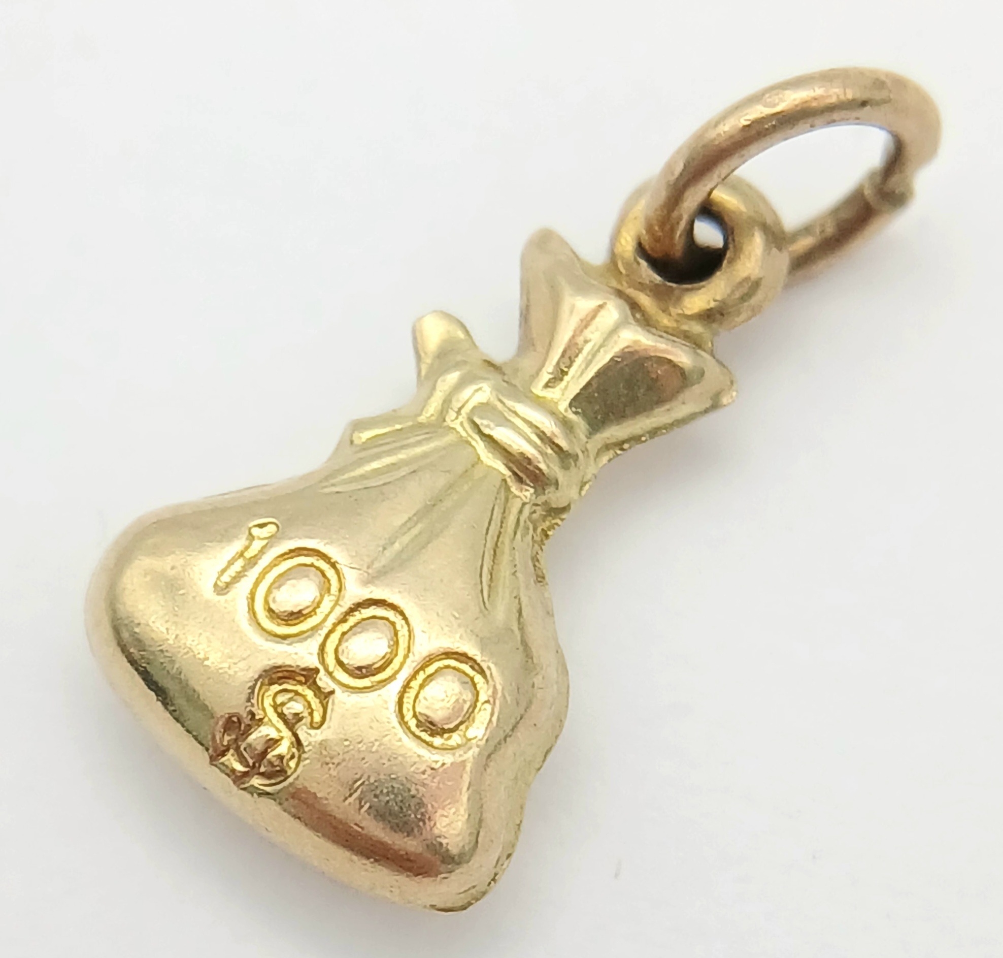 A 9K YELLOW GOLD MONEY BAG CHARM / PENDANT 0.8G. Ref: SC 7040