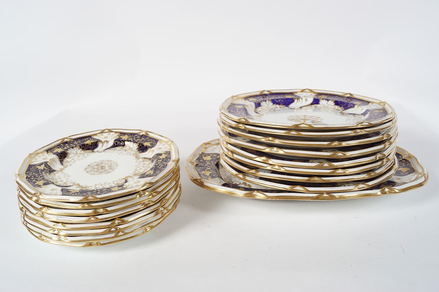each of circular serpentine shape. Comprising: 8 dinner plates (26 cm.) and 8 side plates (21 cm.) and a rectangular serpentine shaped platter 36 x 25 cm.