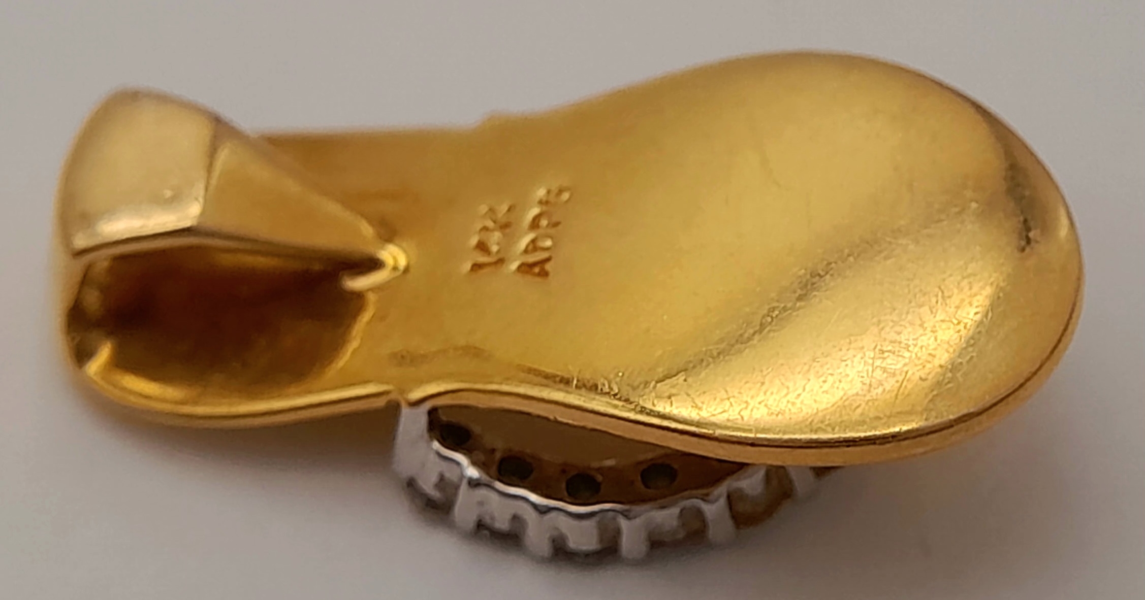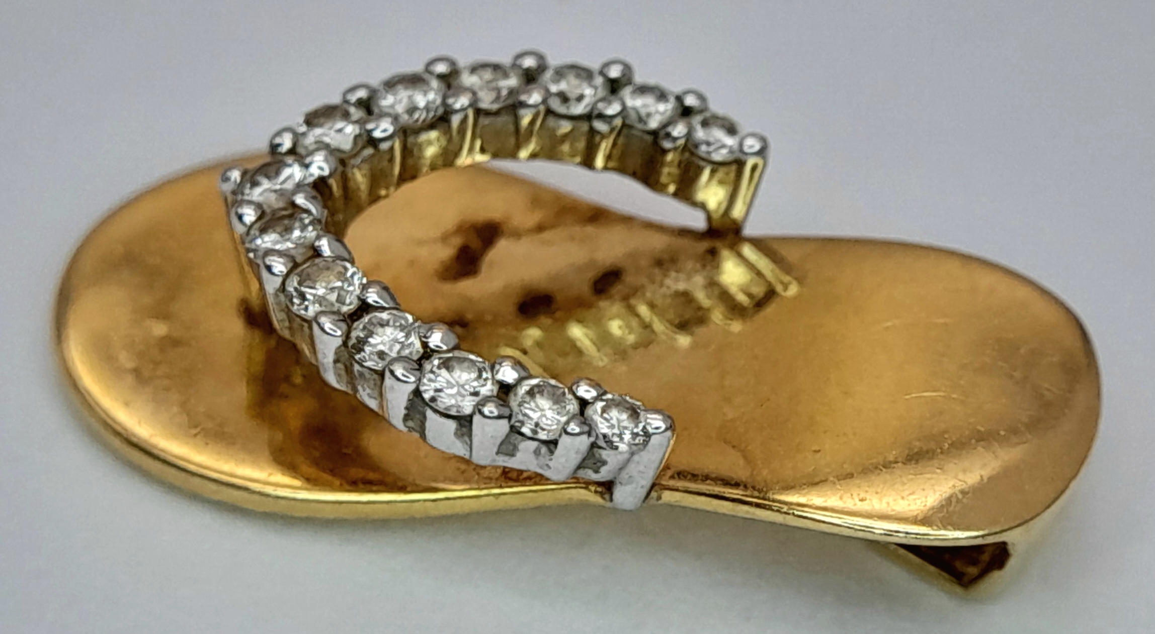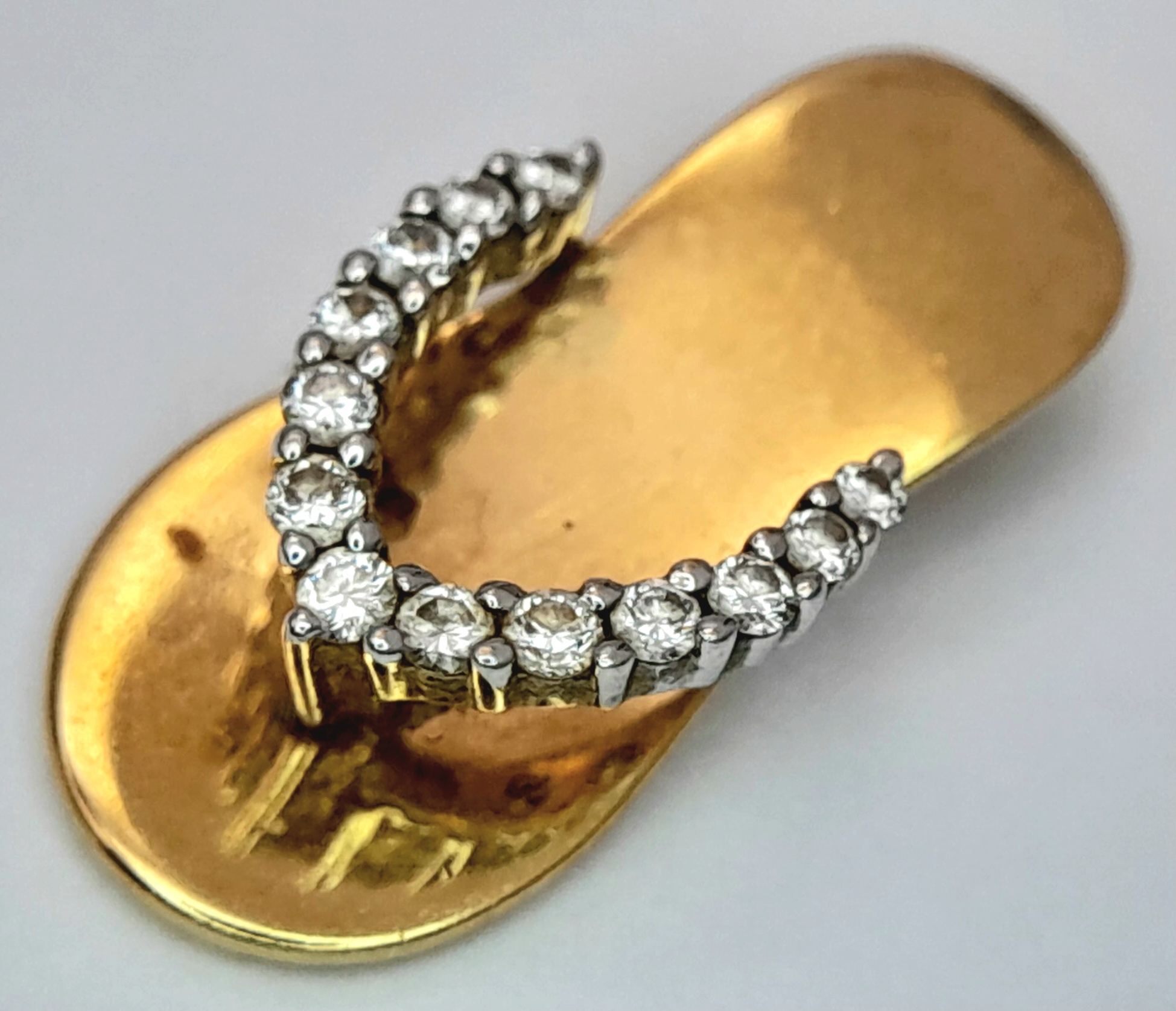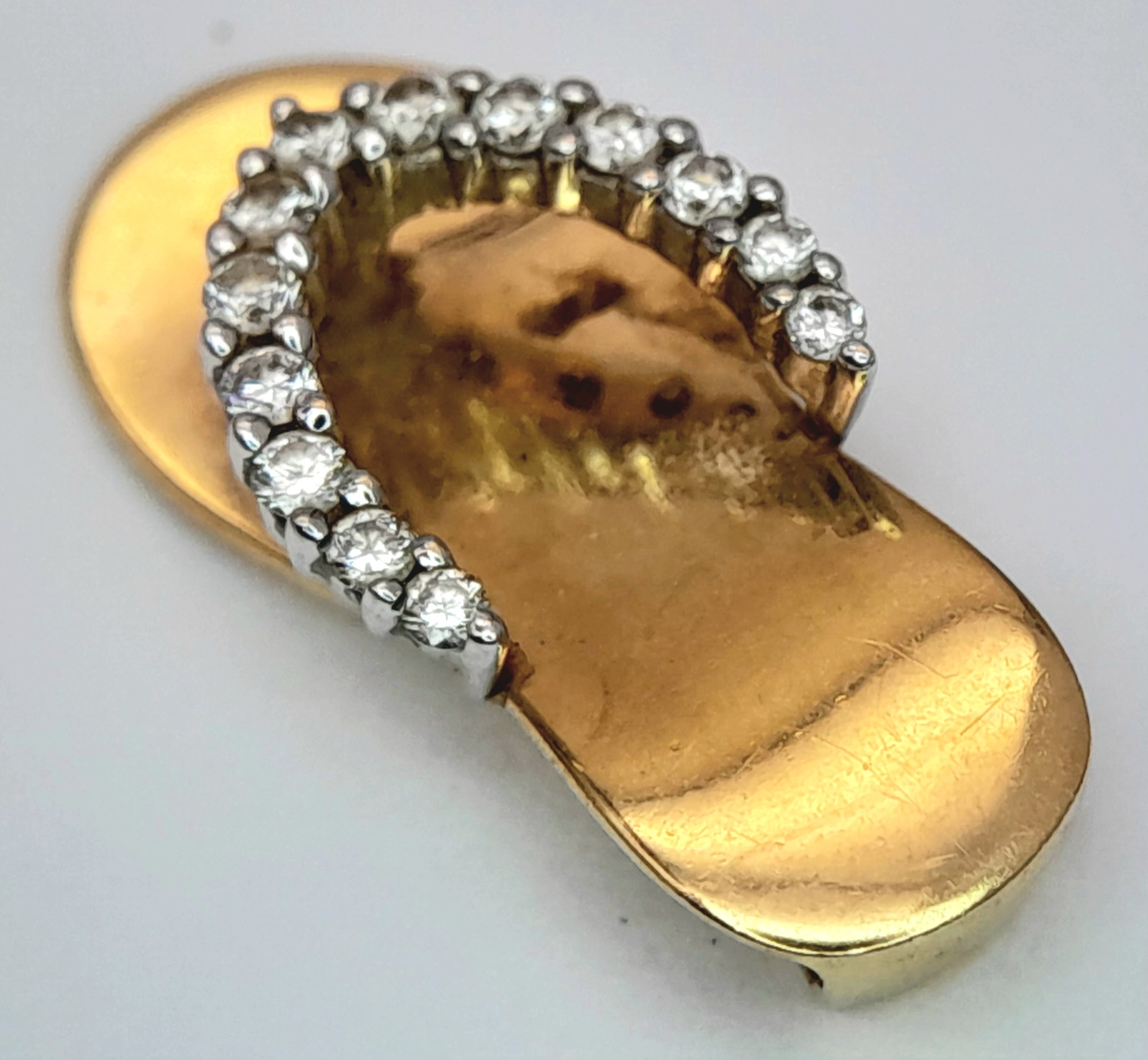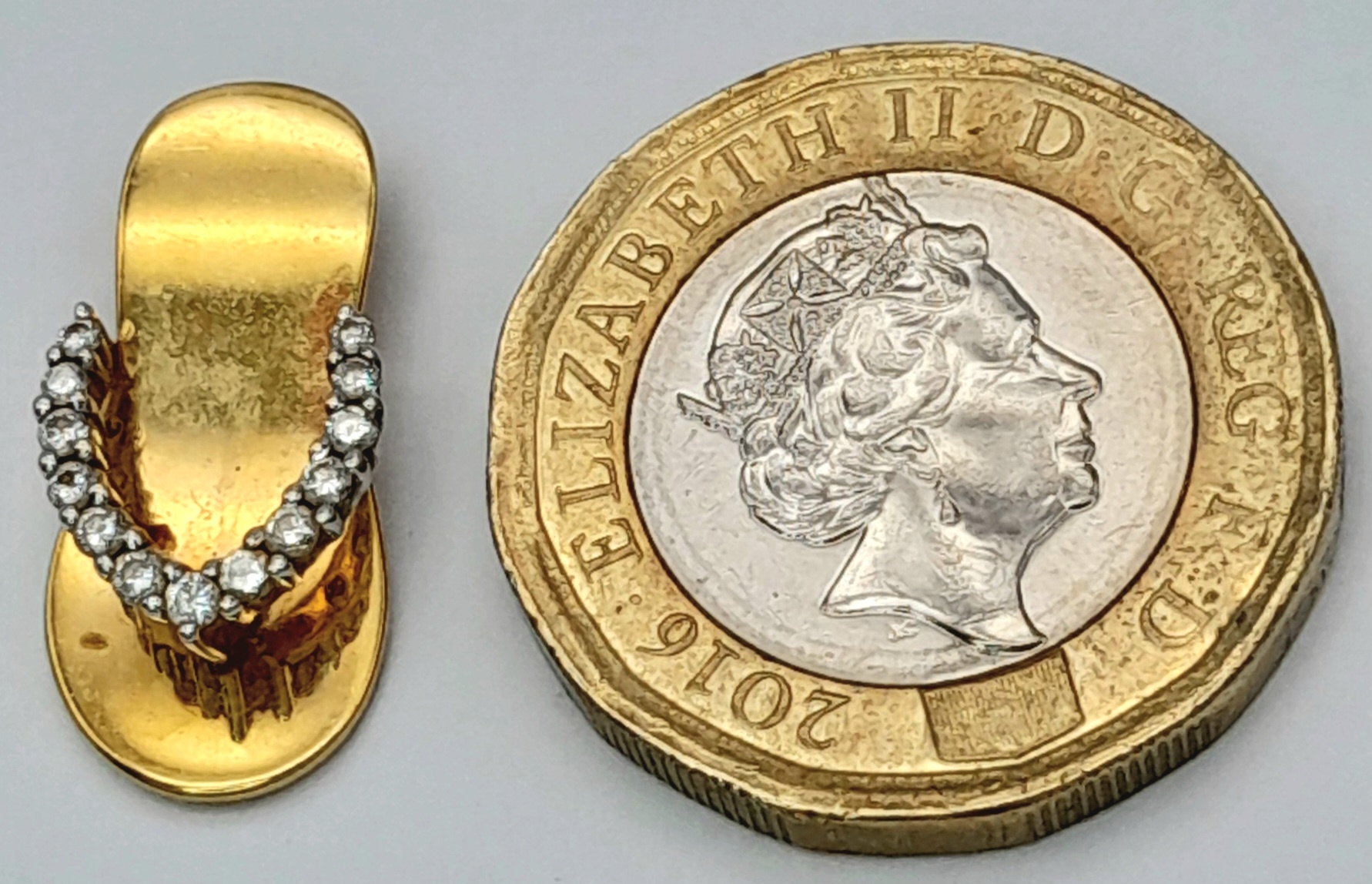 A 14K YELLOW GOLD DIAMOND SET SANDAL CHARM / PENDANT. 2.3G. SC6050.
