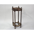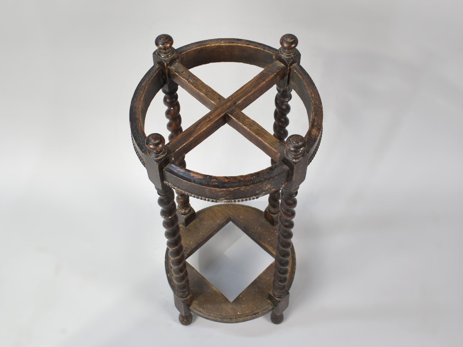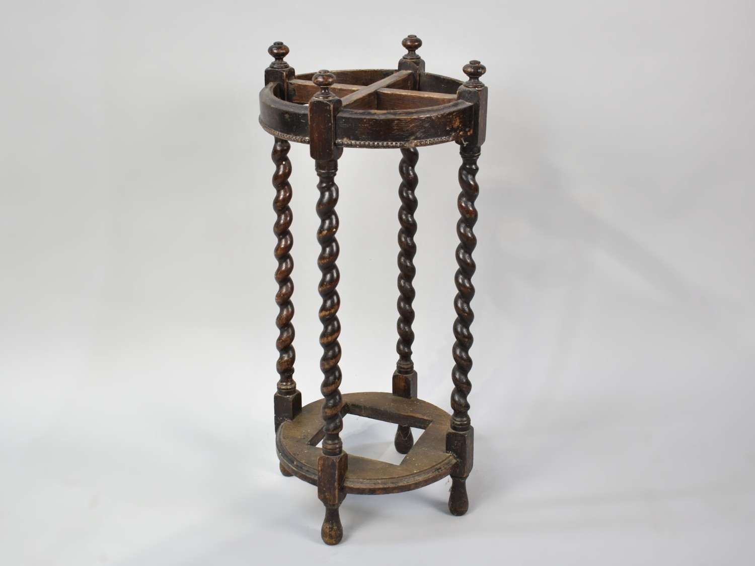 An Edwardian Oak Circular Four Section Stick Stand with Barley Twist Supports, Missing Metal Drip Tray, 70cms High