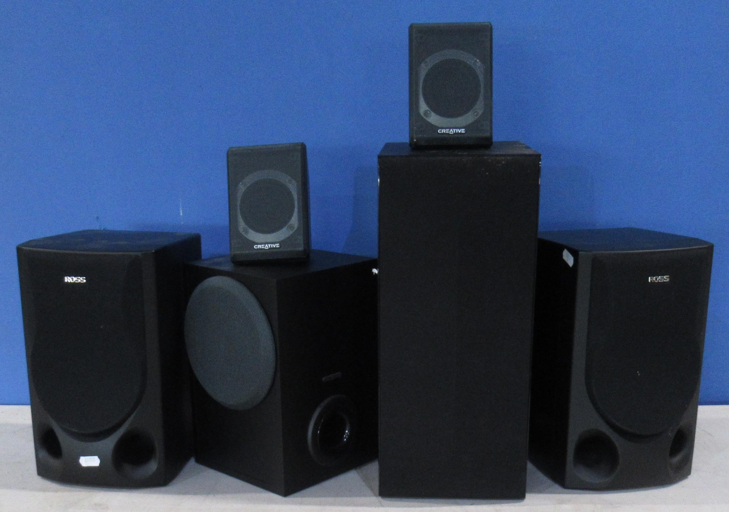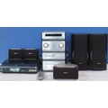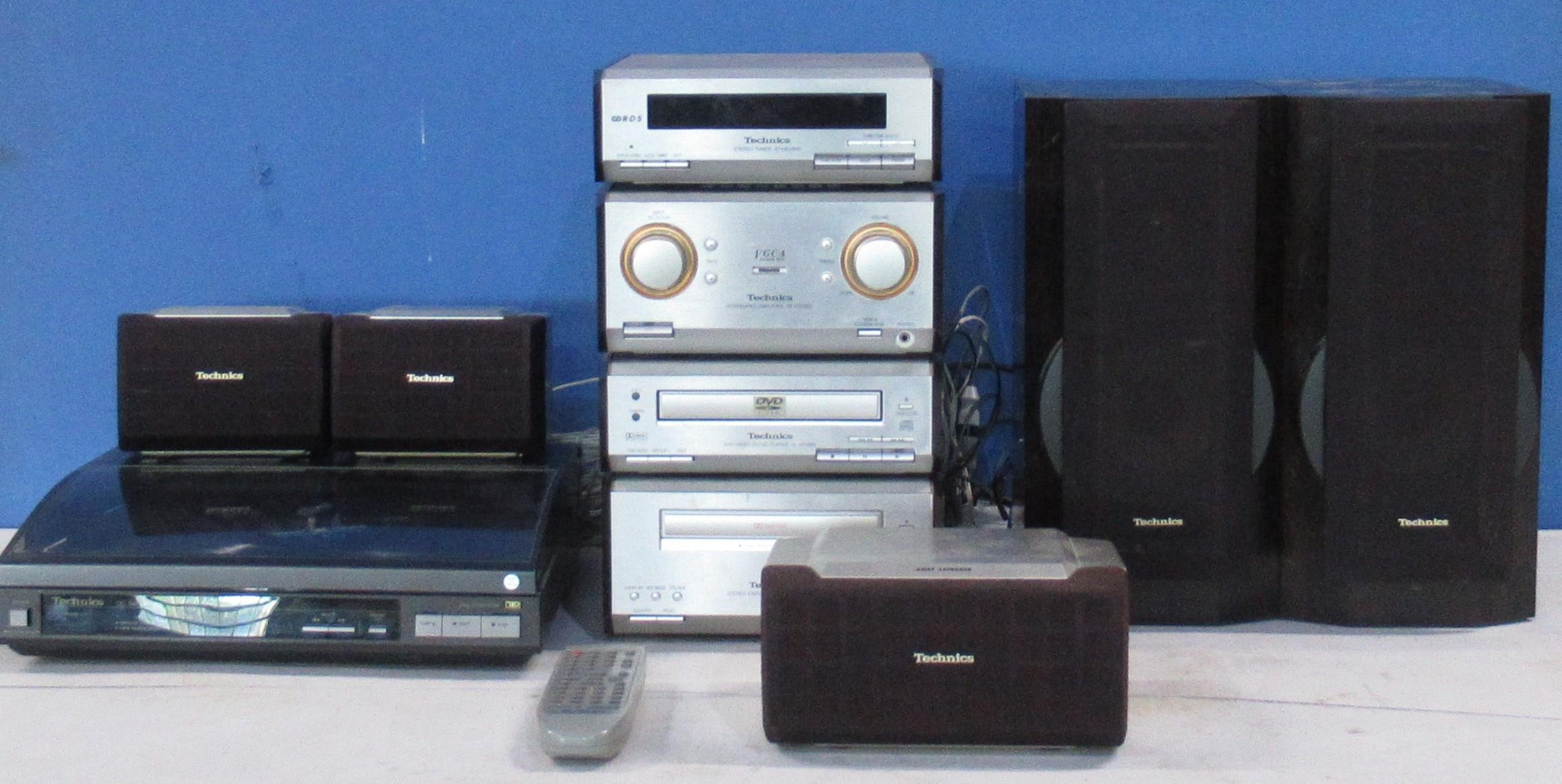 Technics hi-fi turntable SLJ11D, stereo tuner STHDV600 amplifier SEHDV600 DVD, video, CD player SLHDV600, stereo cassette deck RSHDA800 with SB-PS96 and SBHDV600 speakers, LG wireless active subwoofer creative inspire PV80 and two speakers, pair of Ross hi-fi speakers etc (2 boxes)