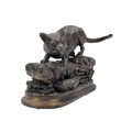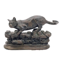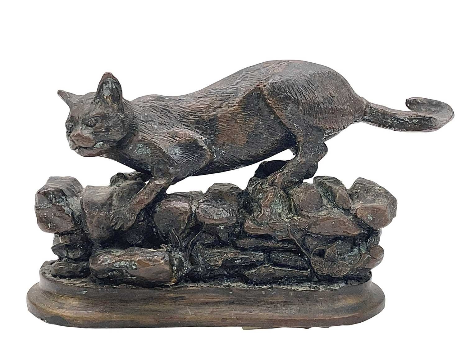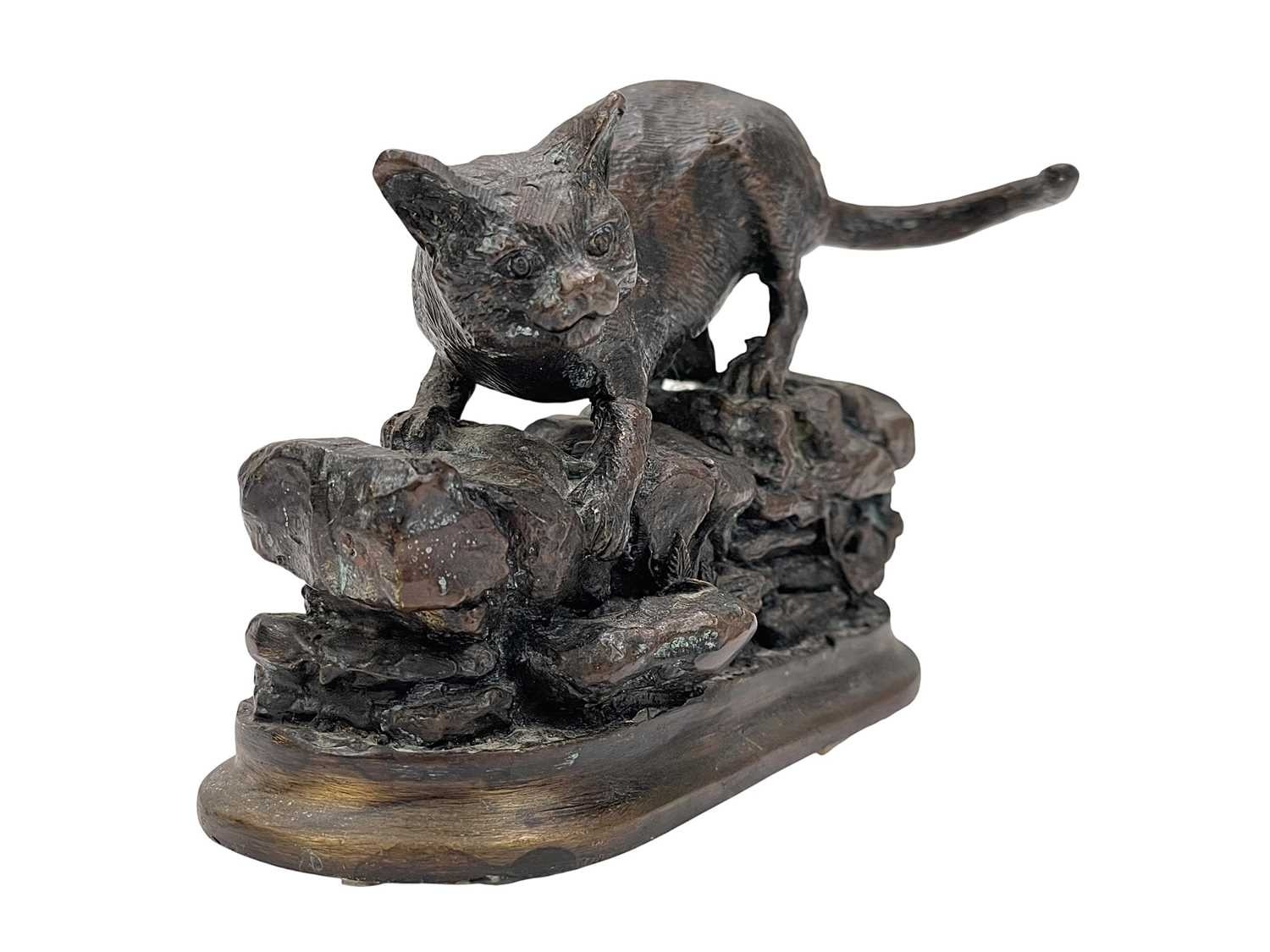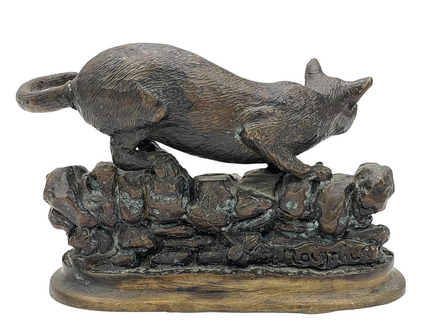 After Jules Moigniez, a small bronze feline figure. 20th century, modelled on a rocky wall, height 9.5cm.