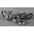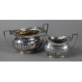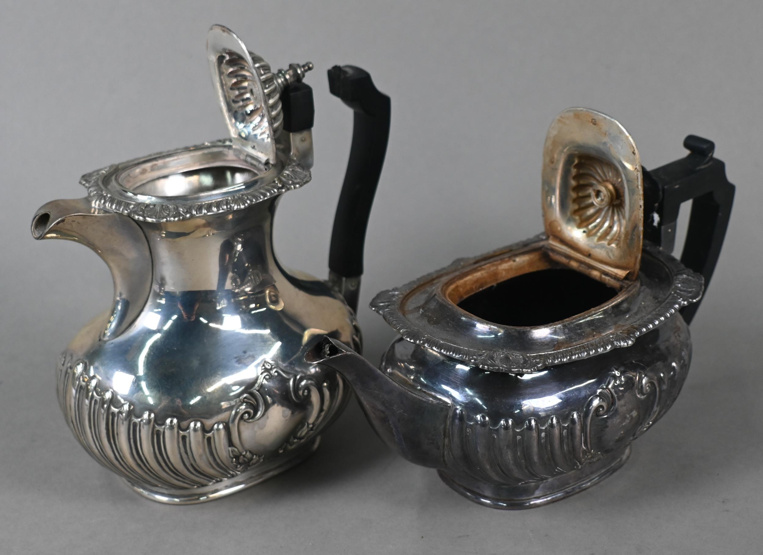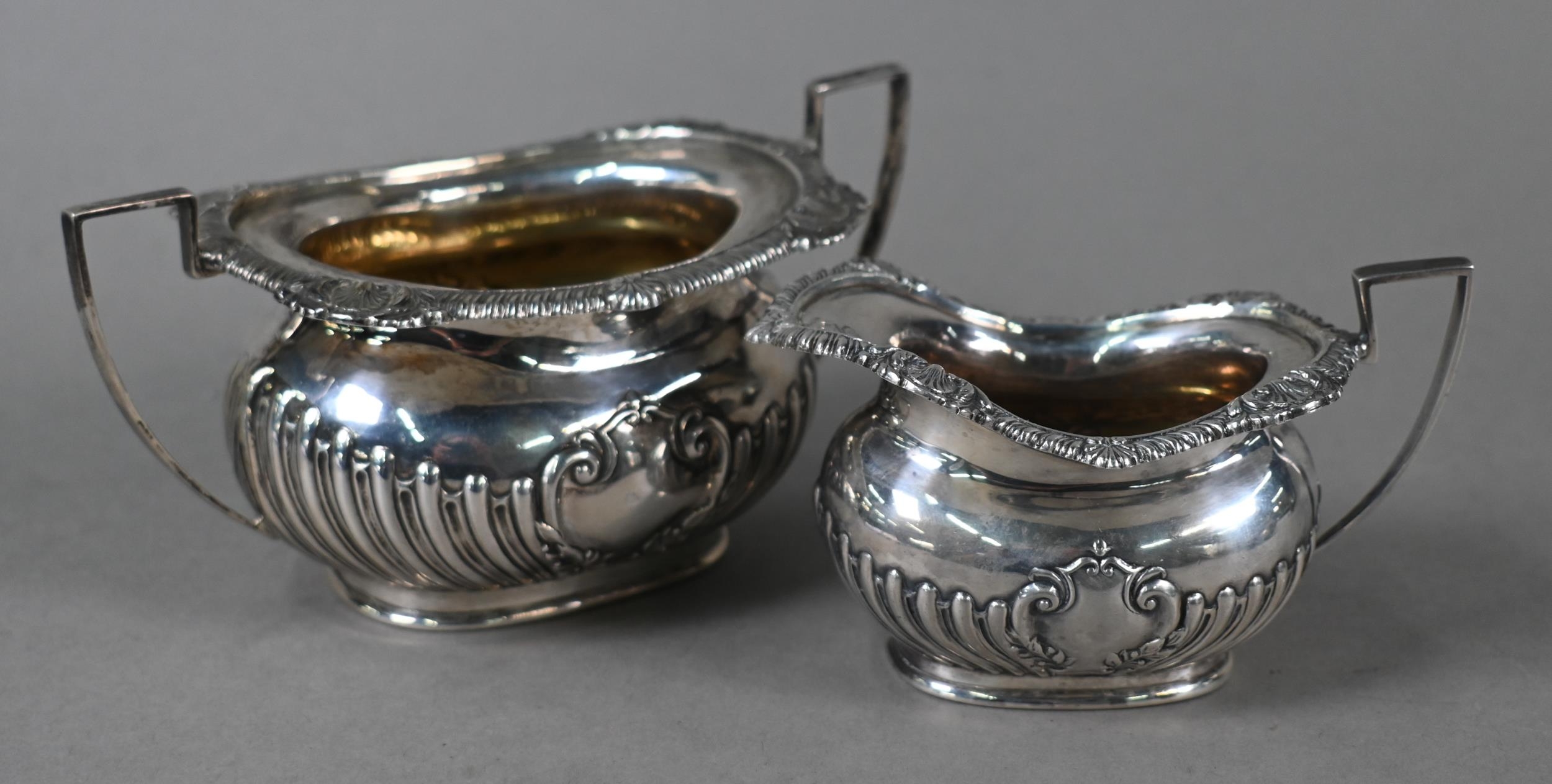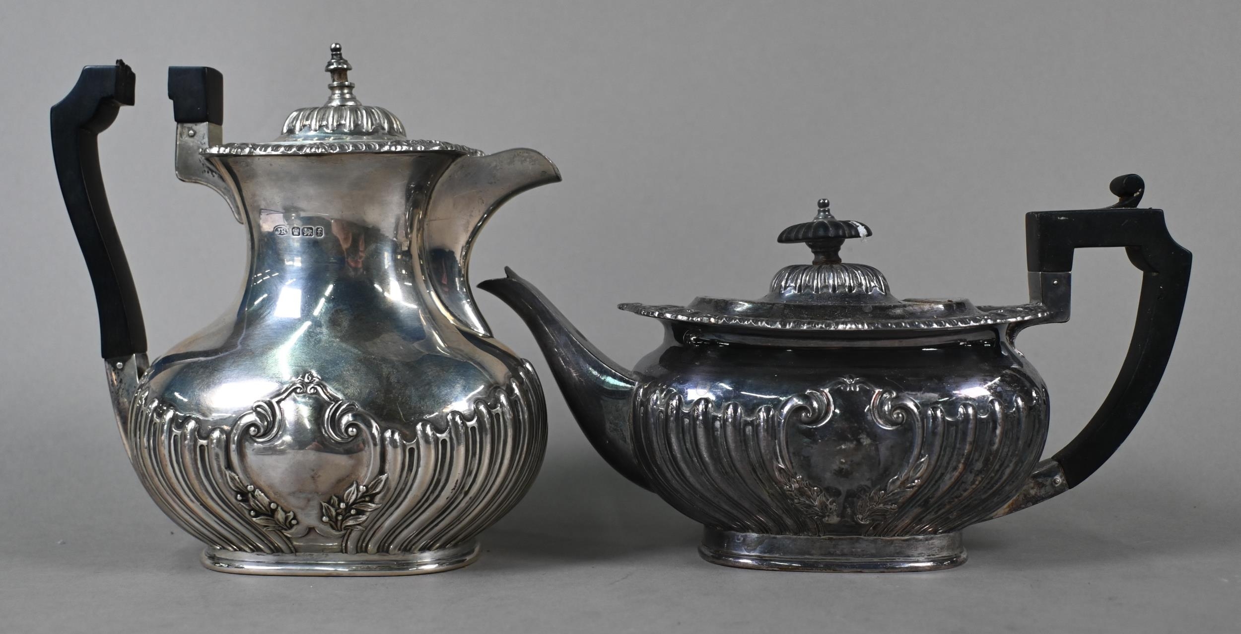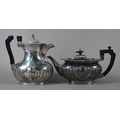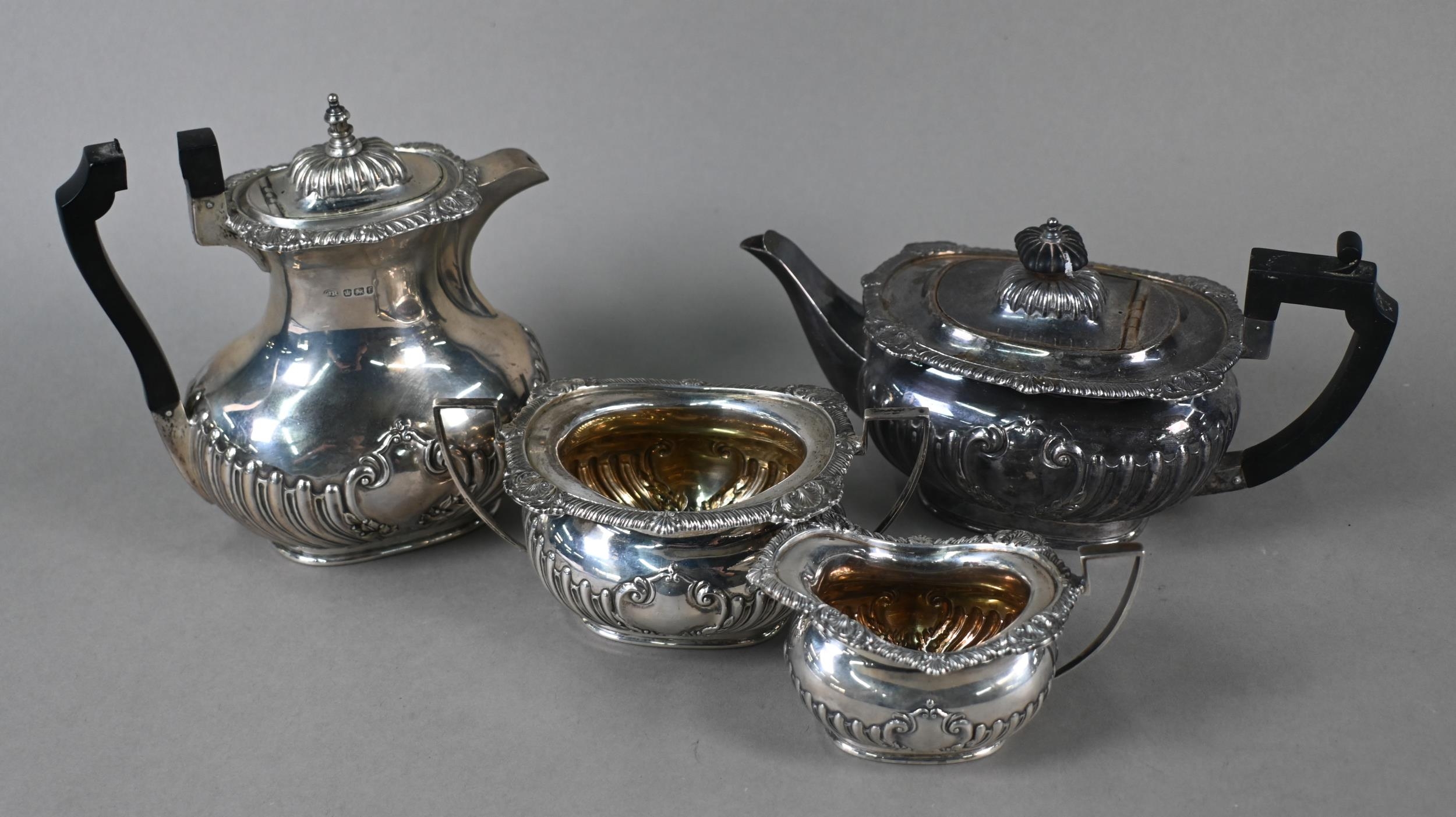 A late Victorian silver four-piece tea service of half-reeded oblong design, John Round & Son Ltd, Sheffield 1897, 37 oz gross