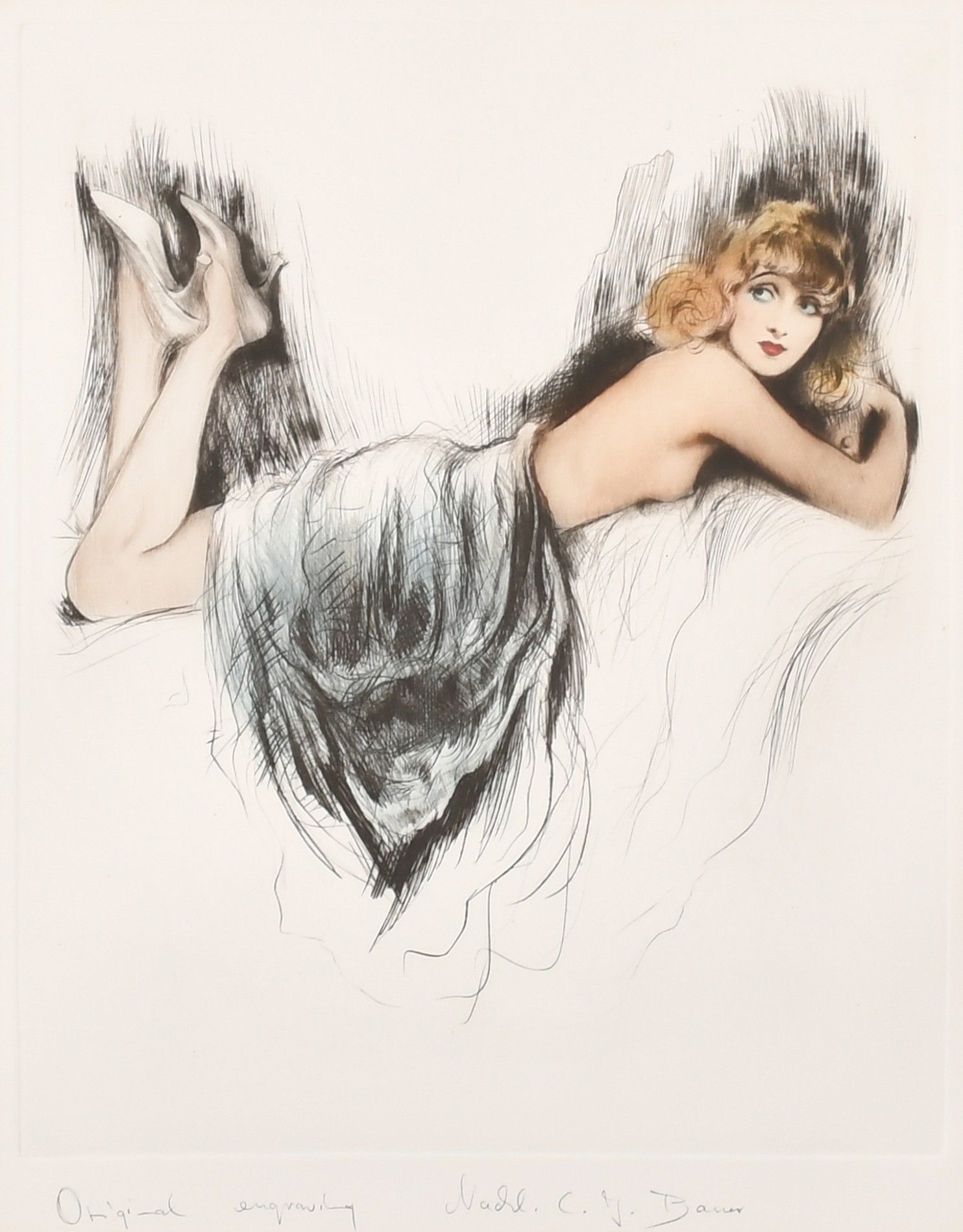 Carl Josef Bauer (1897-1989) German. Semi Nude, Etching, Inscribed in pencil, 11.75" x 9.75" (30.2 x 24.7cm)