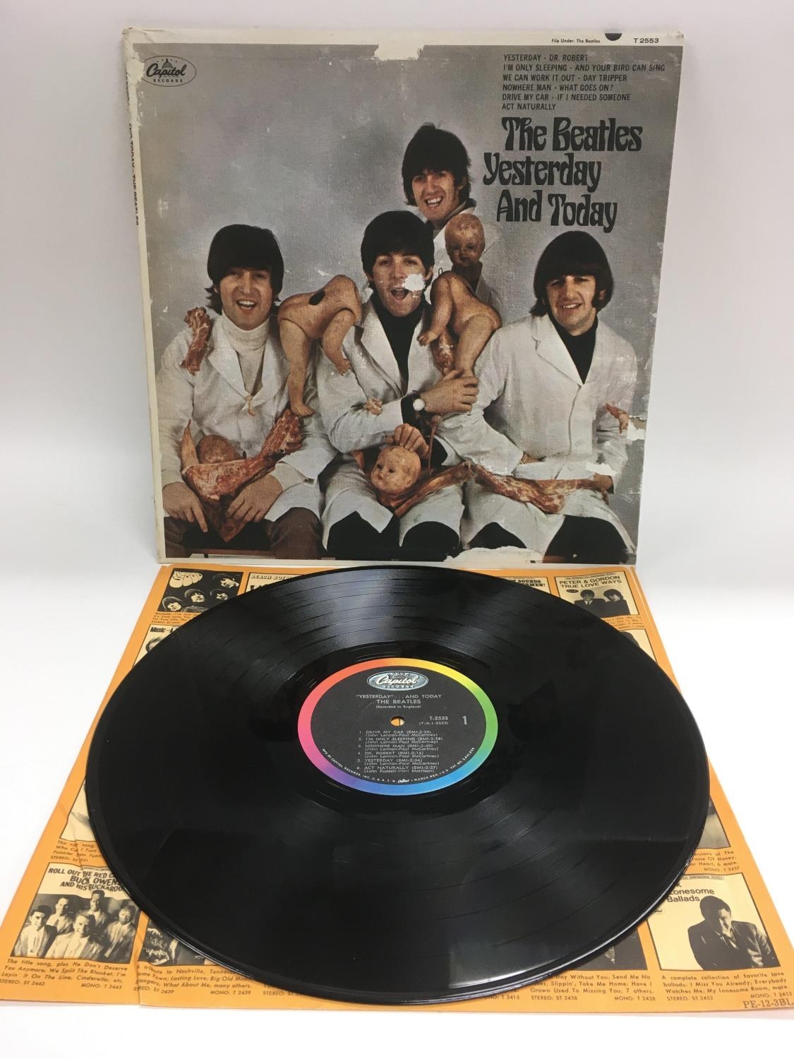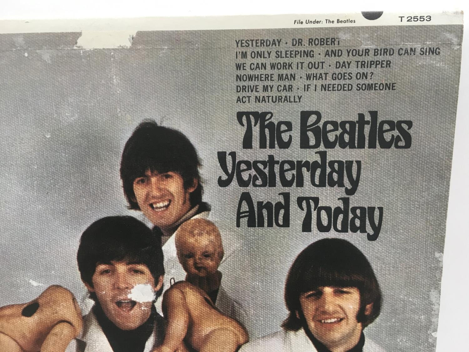 A third state Beatles 'Yesterday And Today' peeled butcher sleeve T2553, sleeve has tears and areas missing, vinyl is VG+, record itself is possibly a later copy.