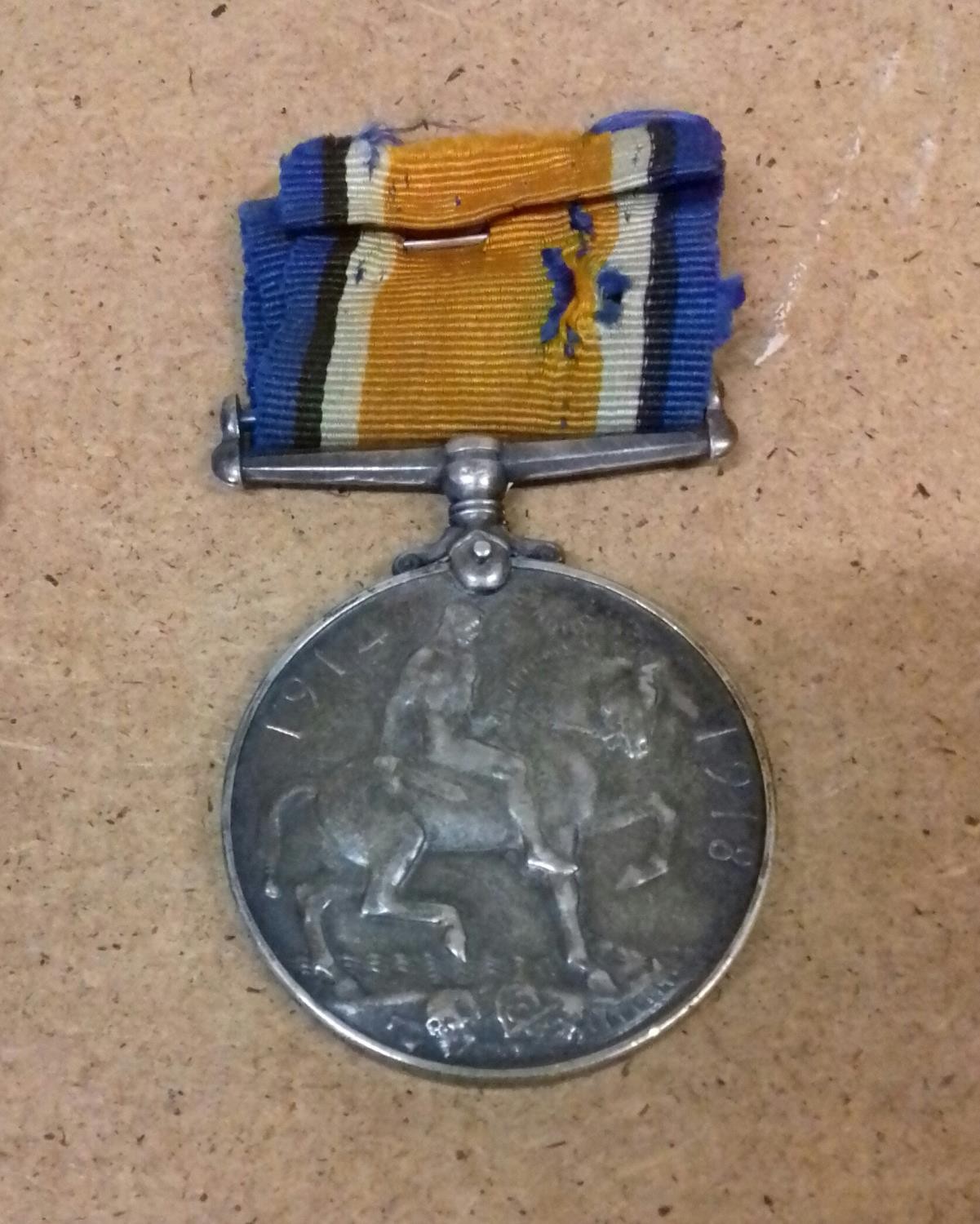 WWI 1914-18 medal with ribbon engraved on edge 112796. GNR. E.LOCKETT R.A.