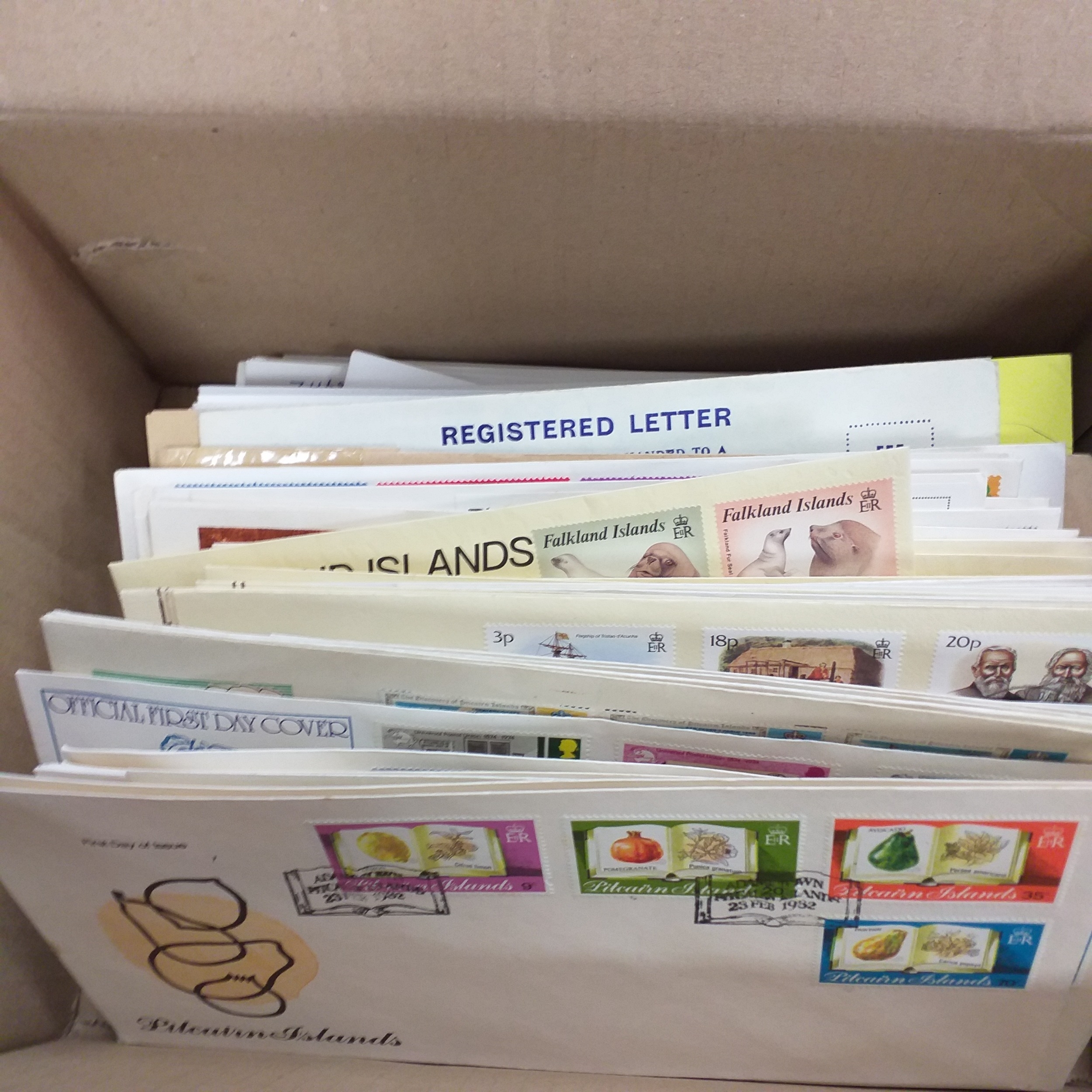 Covers and postal history from Pitcairn, Falklands, Tristan da Cunha, approximately 150 covers first day and commercial.