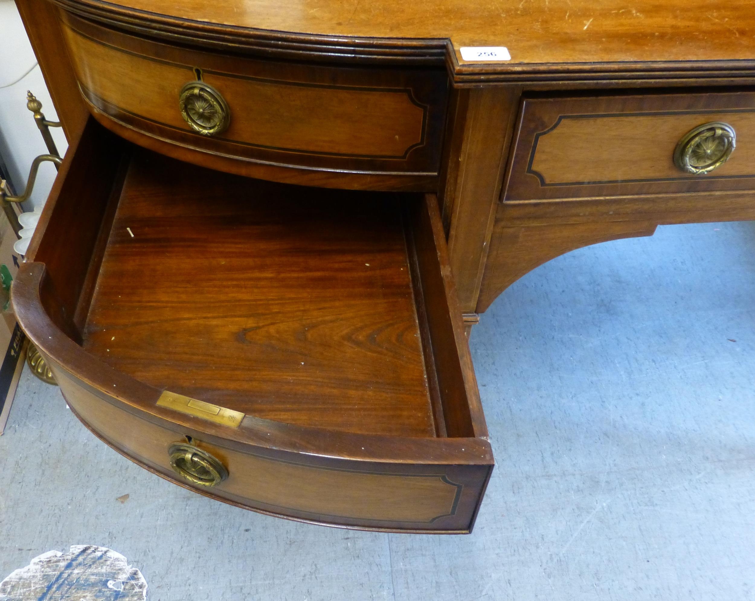 An Edwardian string inlaid mahogany breakfront sideboard wit...