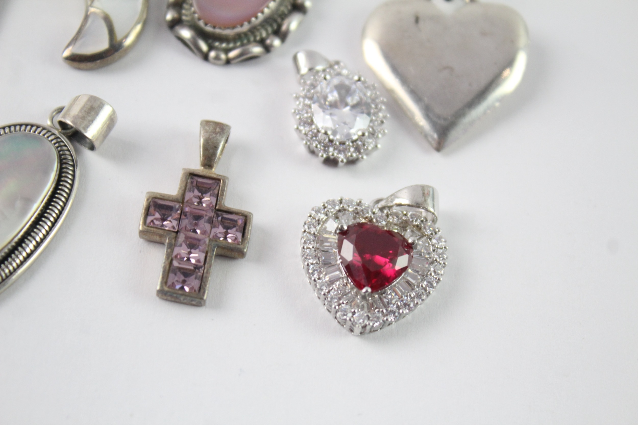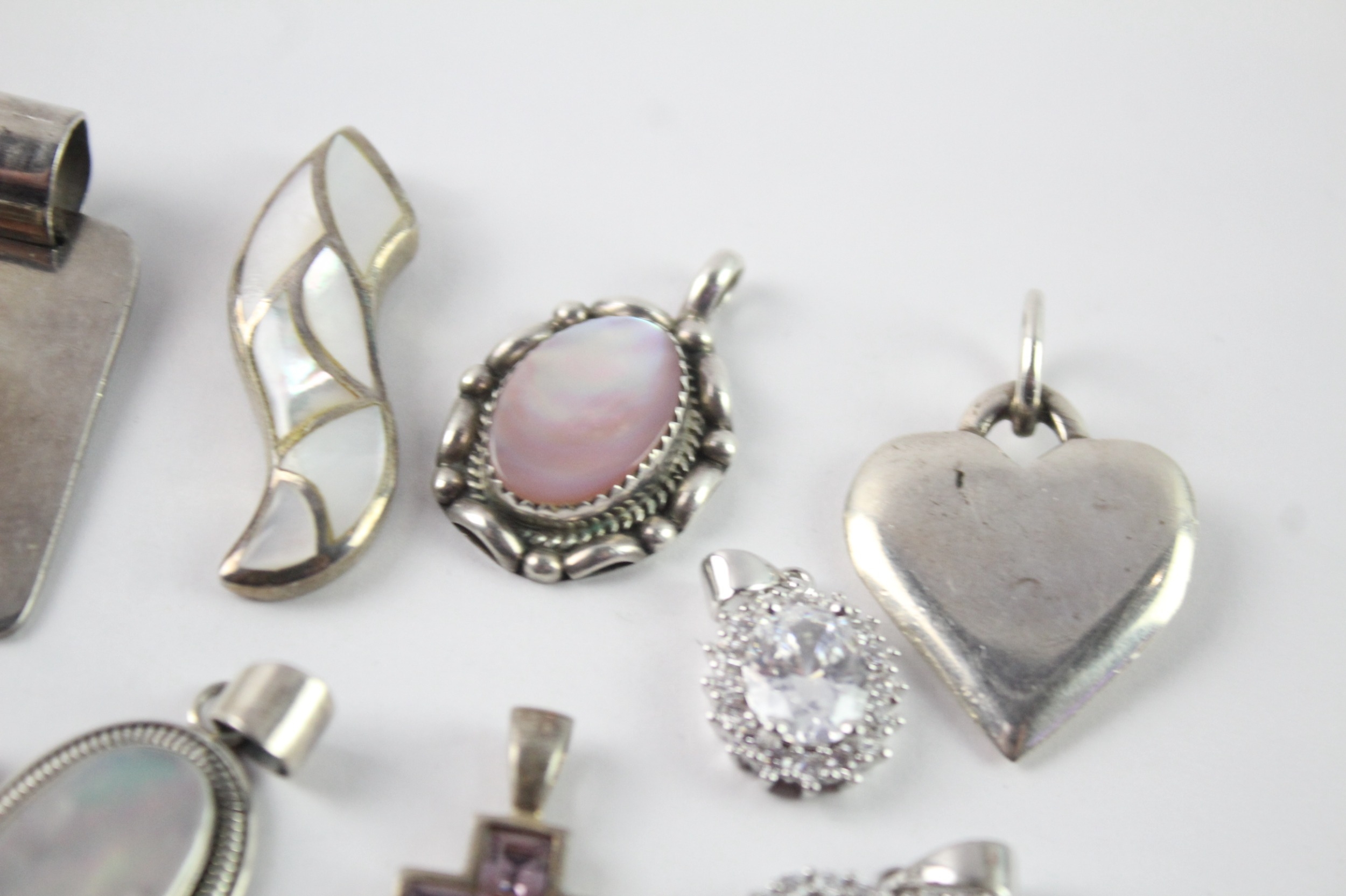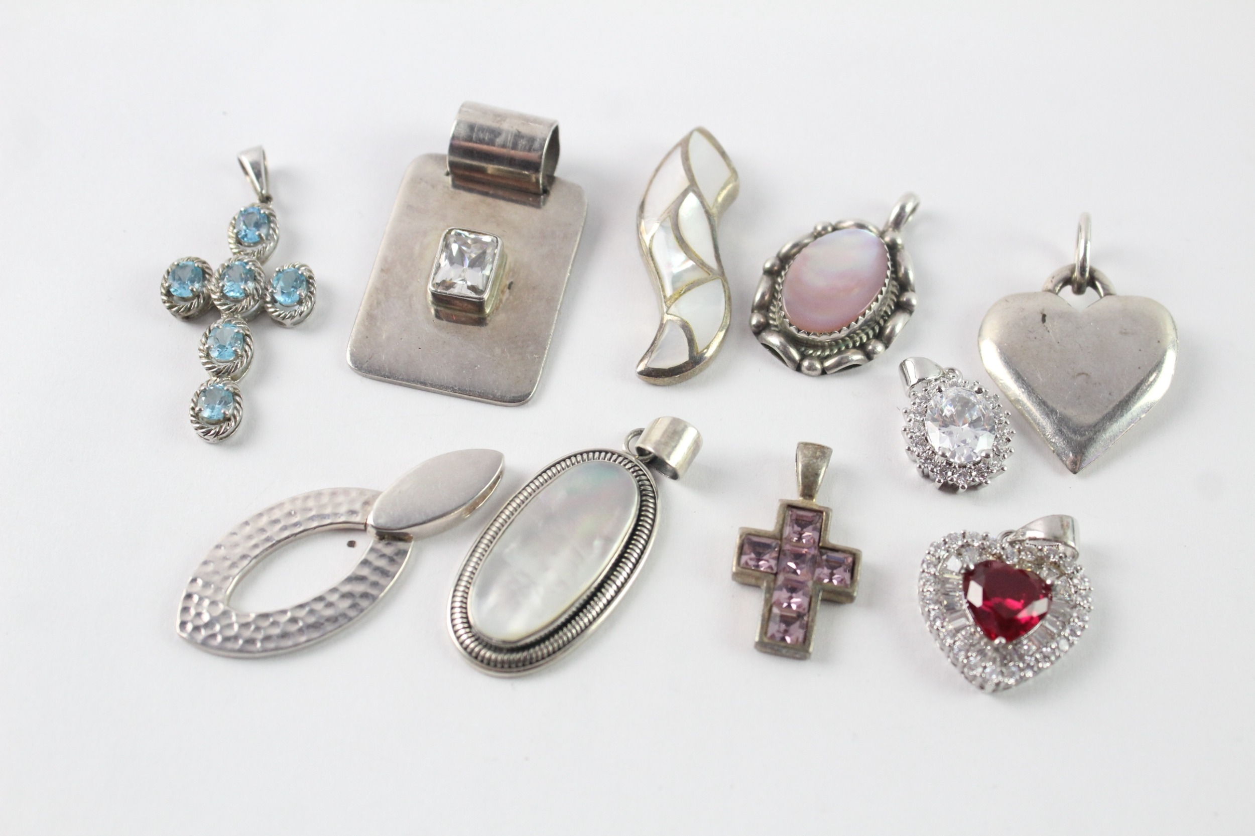 Collection of Sterling Silver Pendants inc. MOP, Stone Set x 10 64g