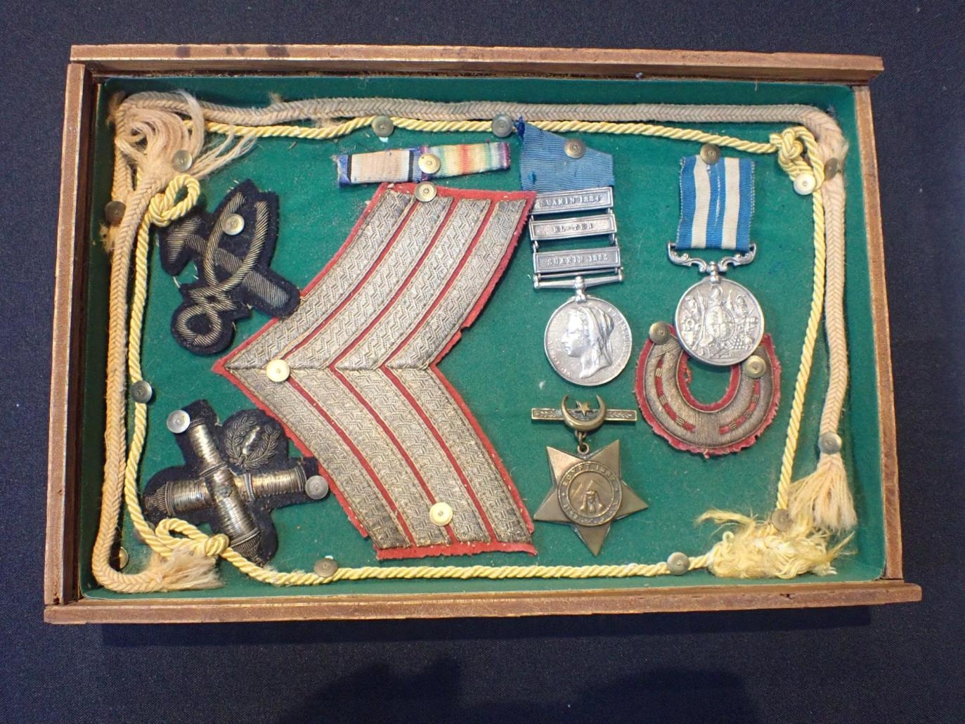 together with an Army long service and good conduct V.R., and Khedive's Star dated 1882, which were previously awarded to 25372 . G.W. Costed . 61 Scot . Div (3) (in a cased display)