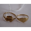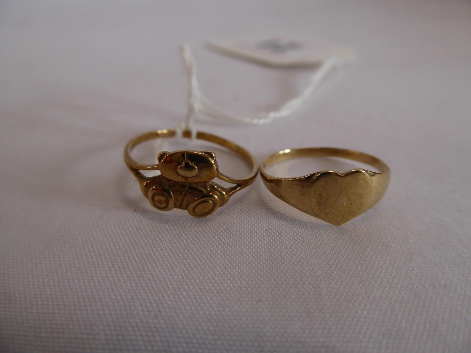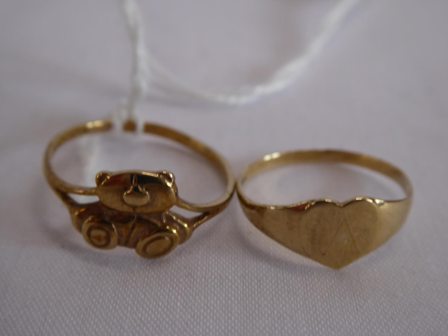 9ct gold childs heart shape signet ring and Forever Friends bear ring (2) (1.4g)