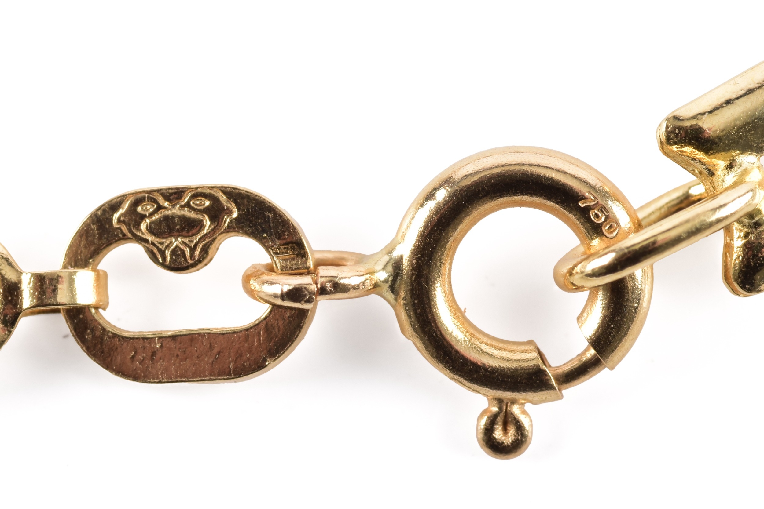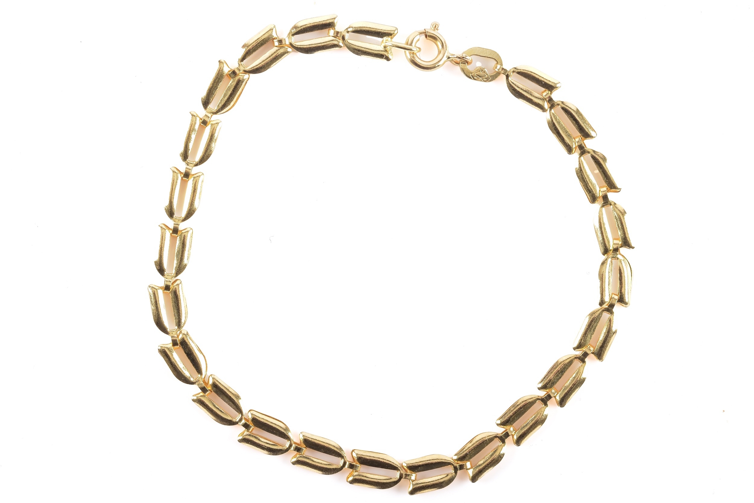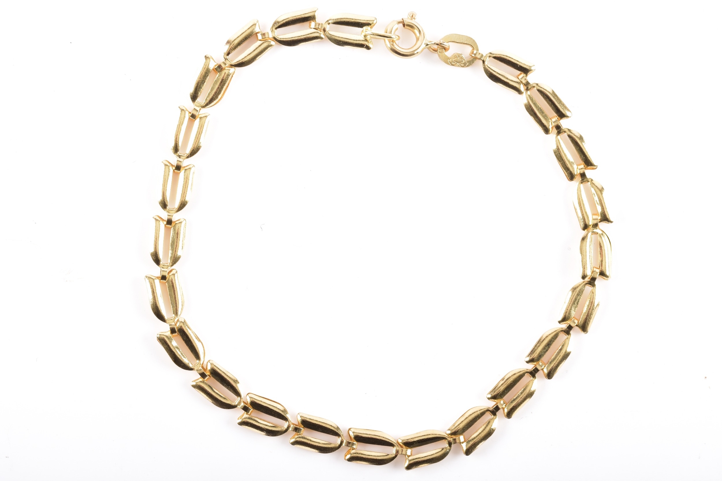 An 18ct yellow gold fancy link bracelet, 18.5 cm long.
