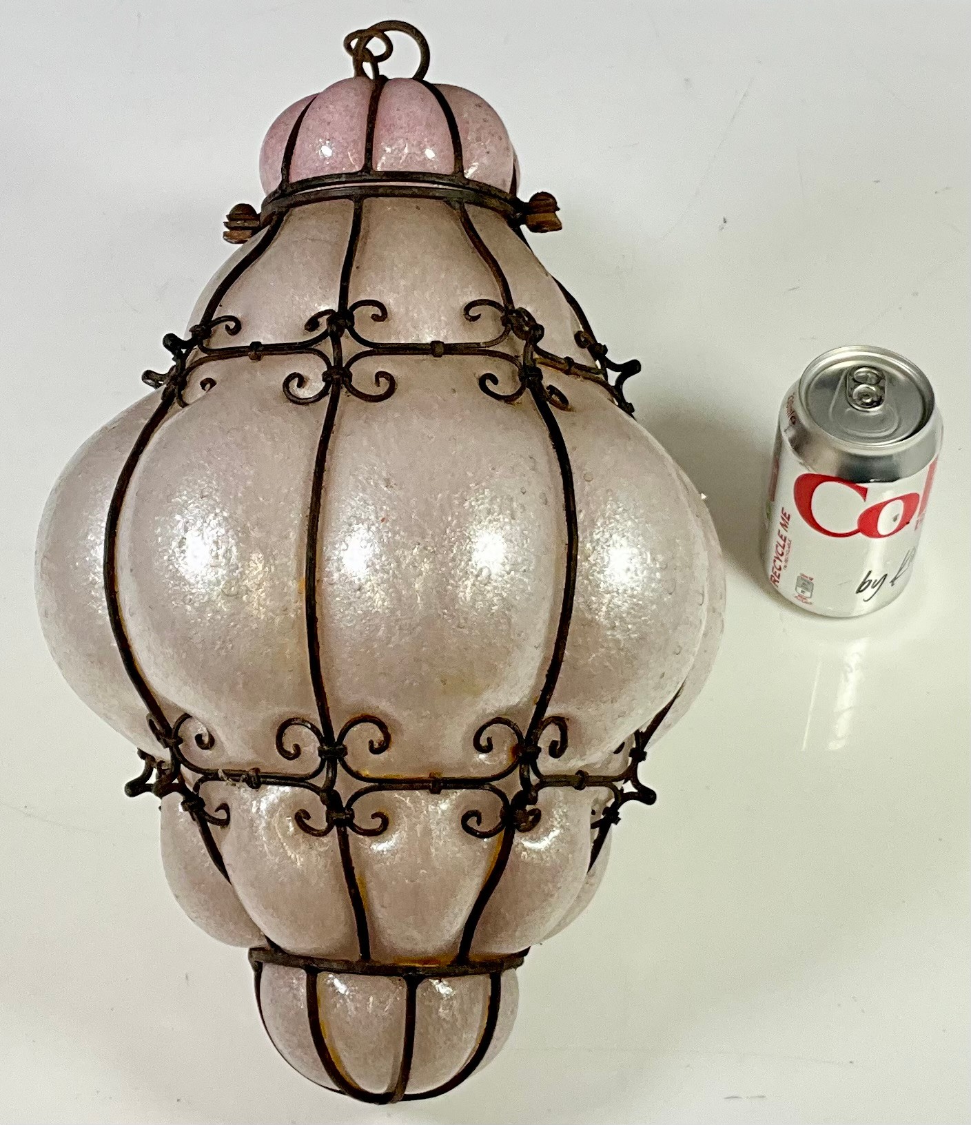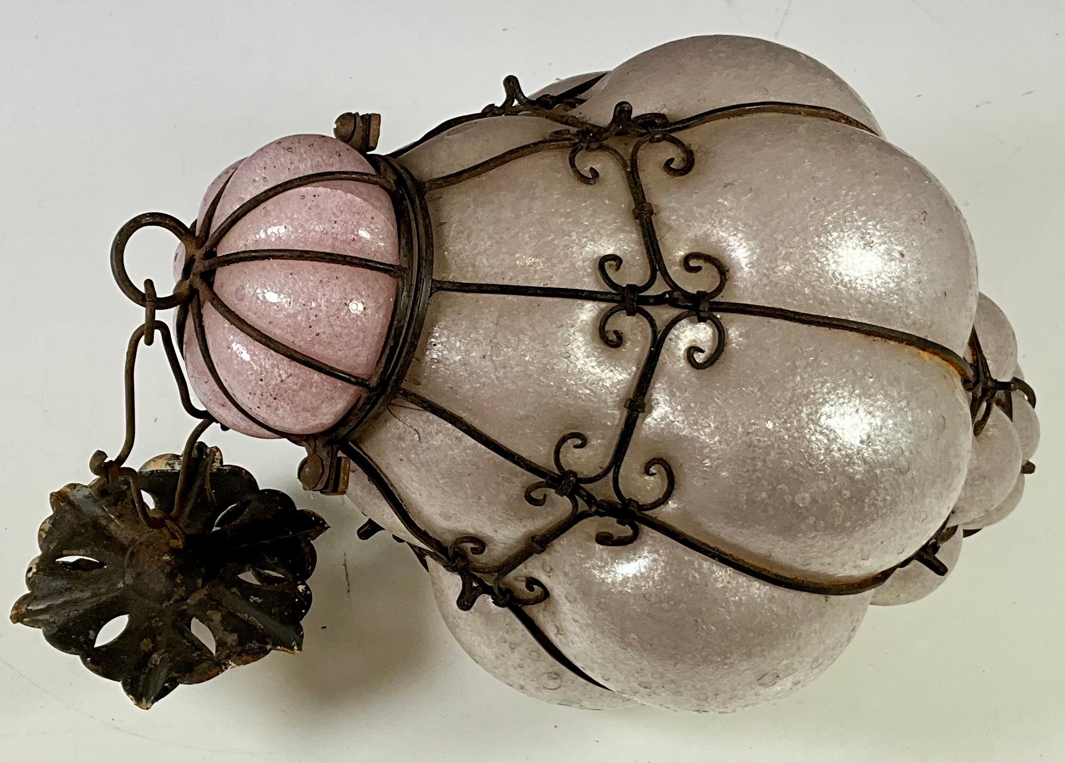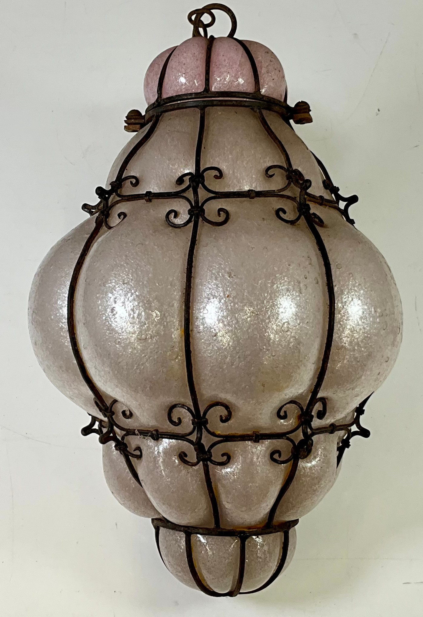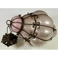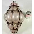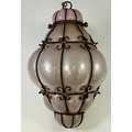 VENETIAN OPALESCENT BUBBLE GLASS LANTERN IN WROUGHT IRON WIREWORK FRAME