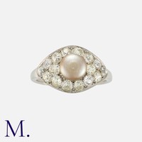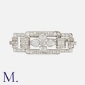 An Art Deco Rose Diamond Brooch in platinum, set with five principal rose cut diamonds - two pear-shaped (approx. 9x7mm), two marquise-shaped (6x4mm) and one round (5mm diameter) to the centre, with further round rose cut diamonds in surround. Partial French mark for platinum.