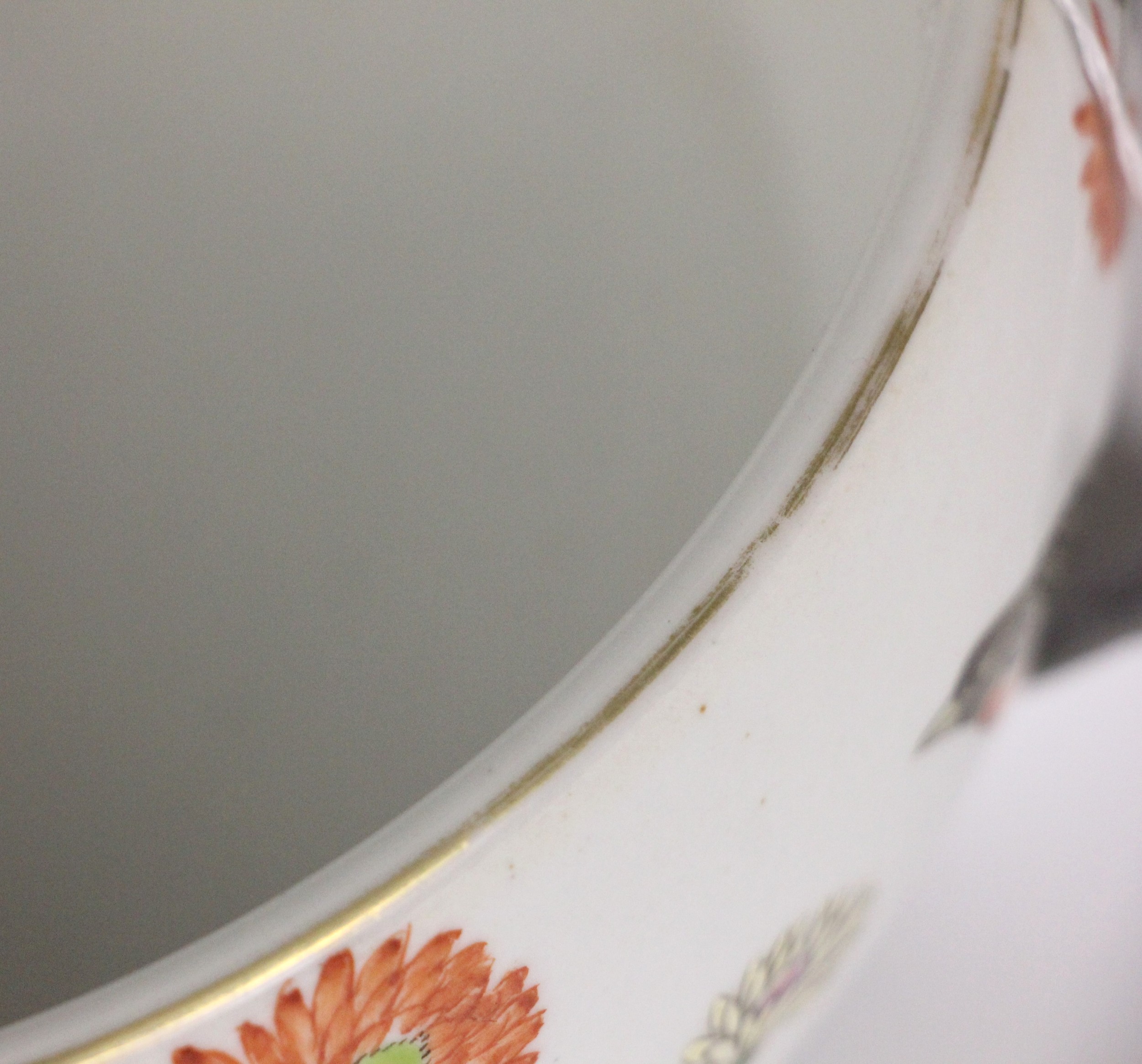 The piece shows the odd small pit and frit, the odd glazing fault and surface wear commensurate with age including rubbing to the gilt highlights, but no obvious chips, cracks, crazing or evidence of restoration.