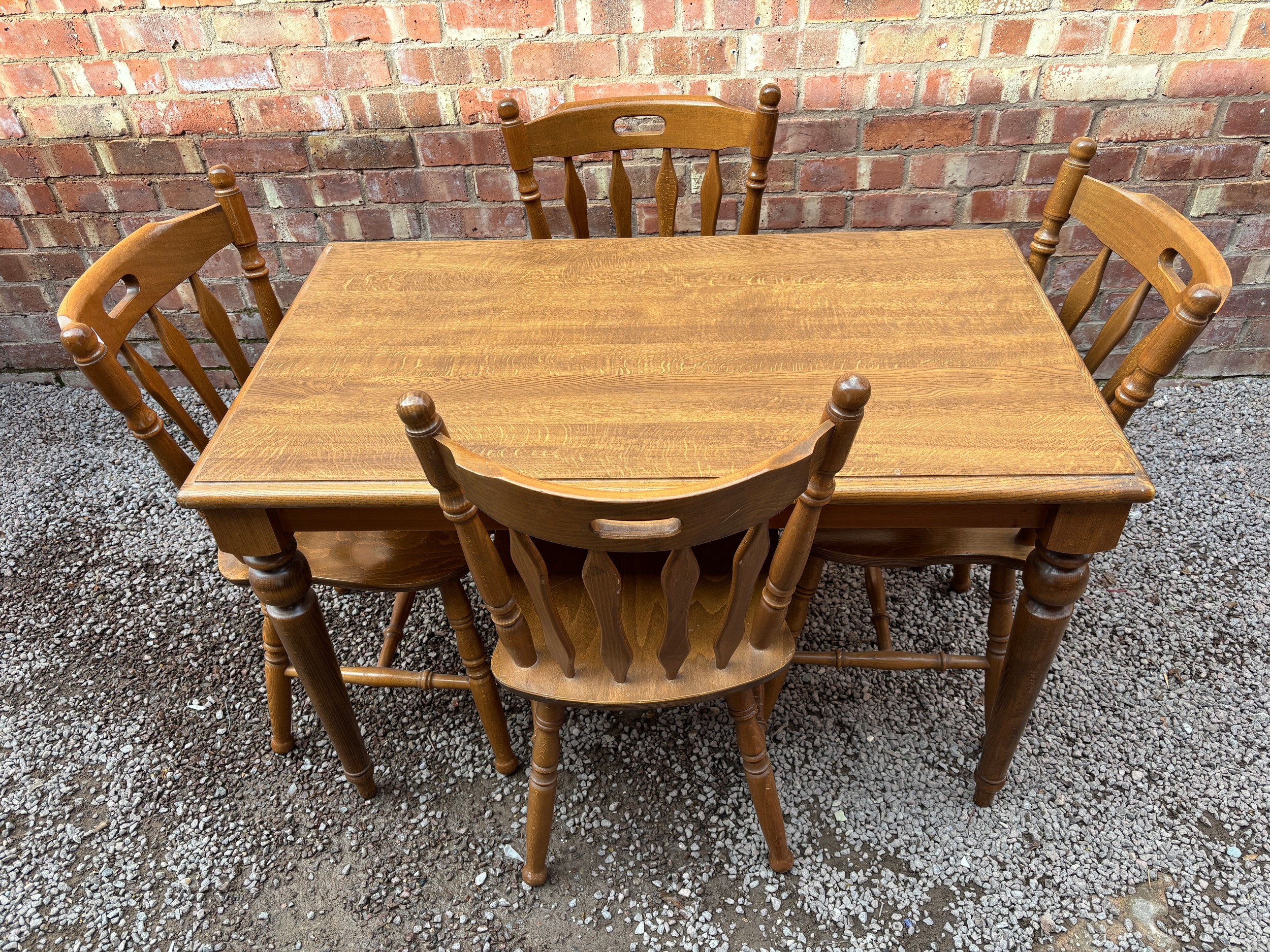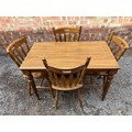 BEECH VICTORIAN STYLE KITCHEN TABLE AND FOUR SPLAT BACK CHAIRS
