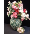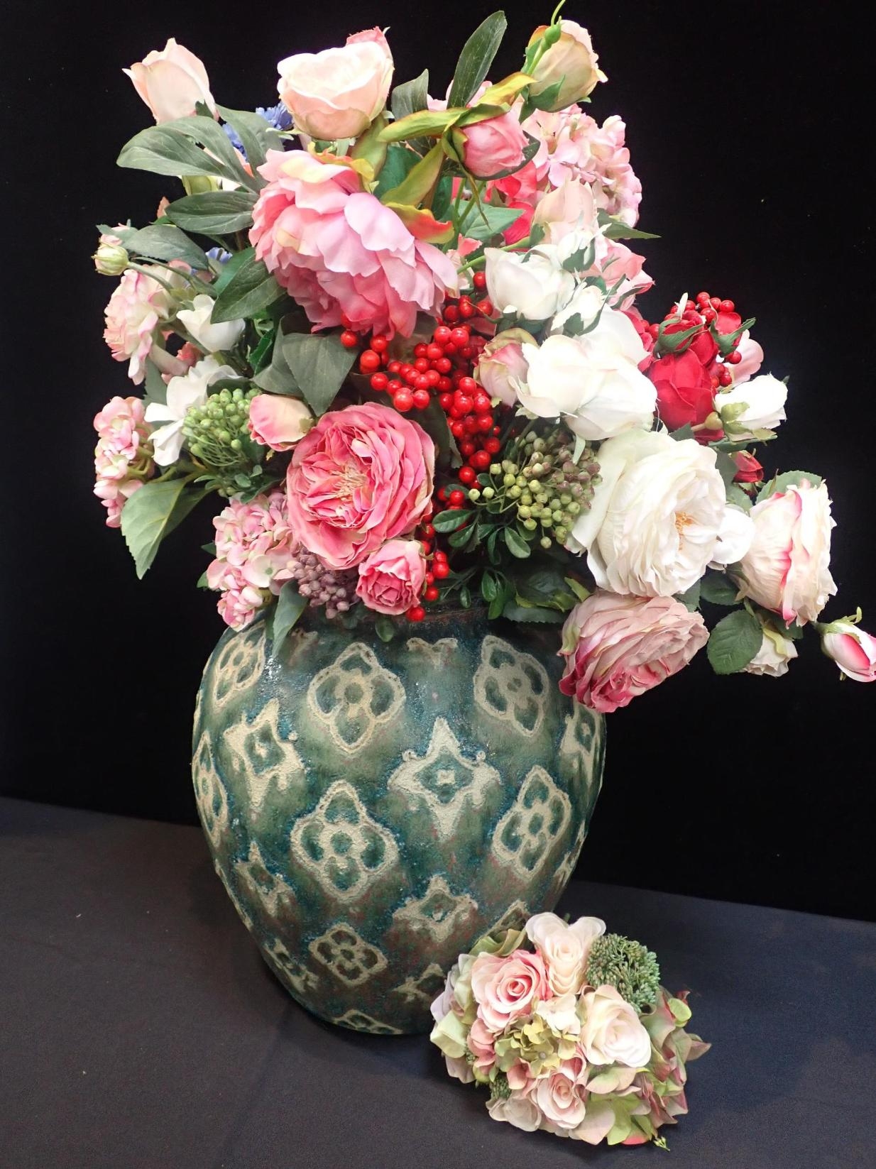 A LARGE POTTERY VASEfull of modern artificial flowers