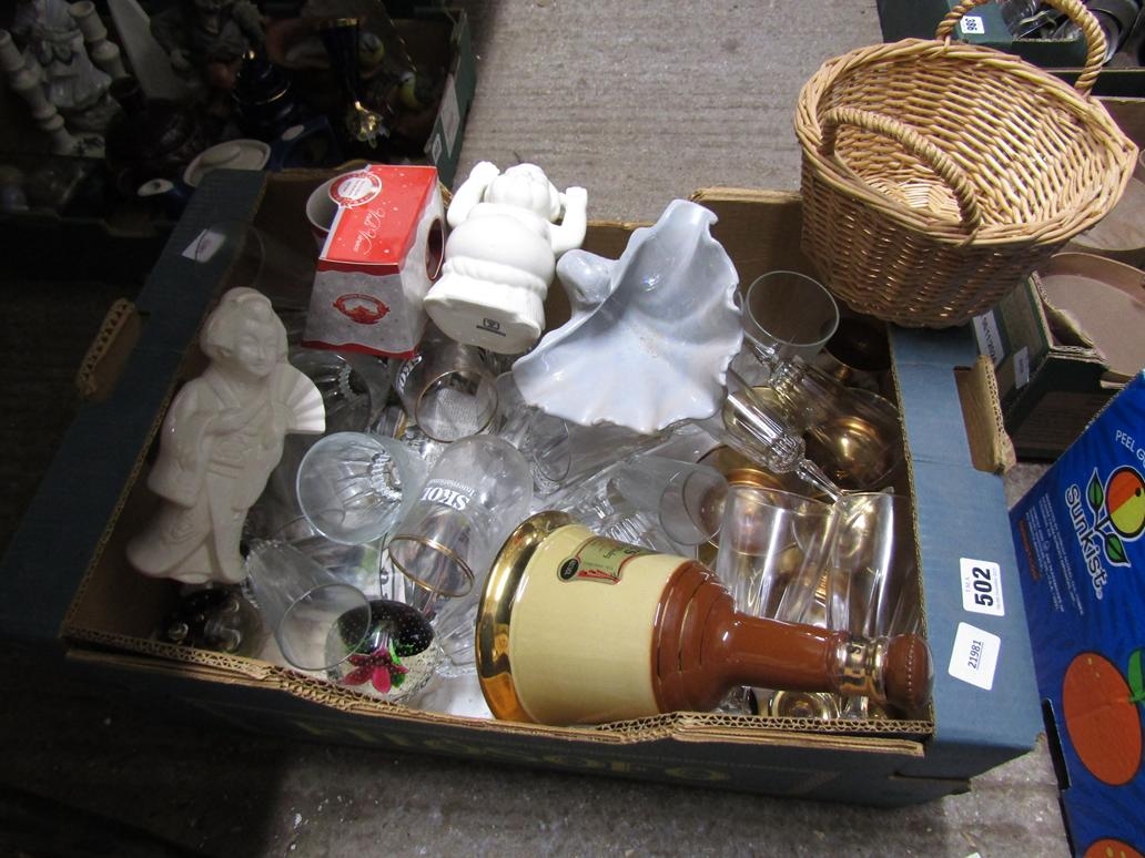BOX OF GLASSES AND DECANTERS