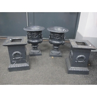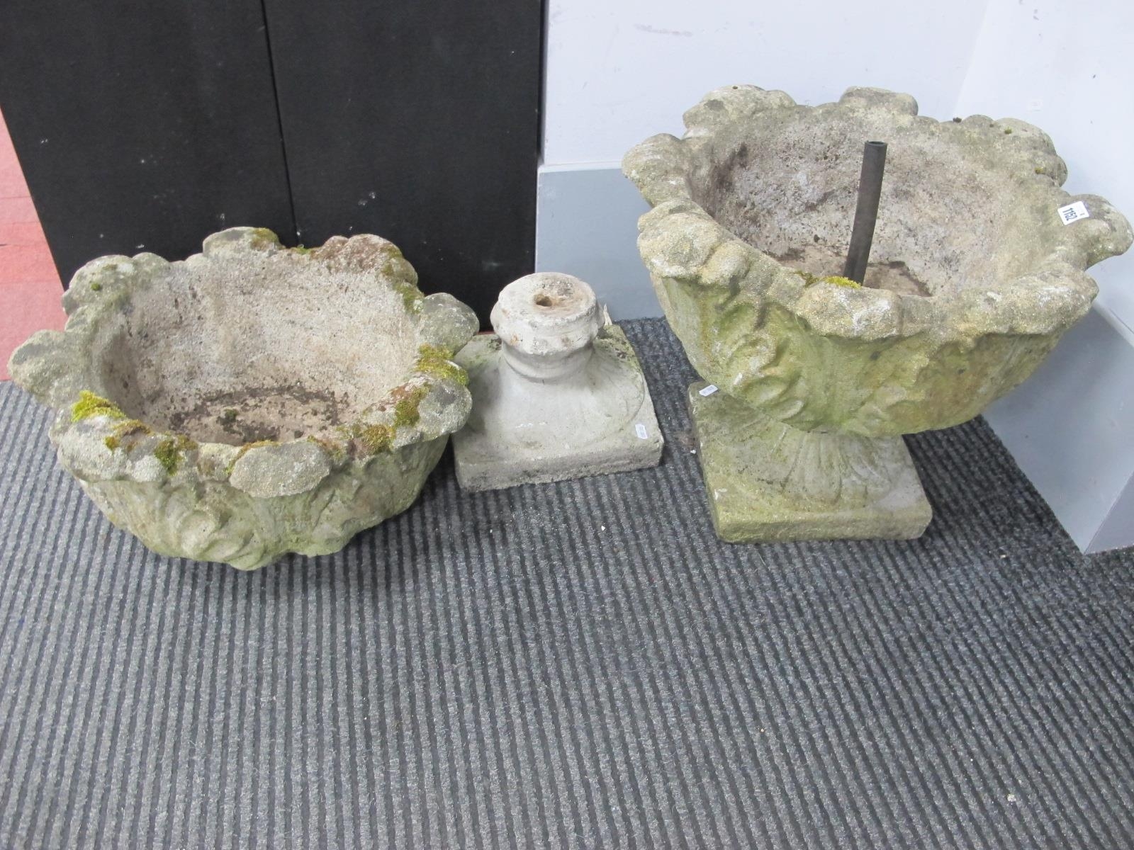 A Pair of Stoneware Planters, with a shaped rim, leaf decoration, on stands, 40cm high.