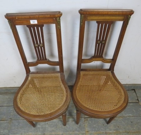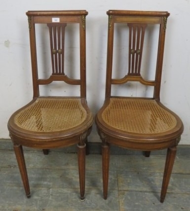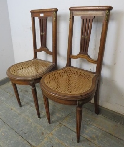 A pair of French Louis XV style bergere seated chairs. H91cm x W41cm x D50cm approx.