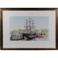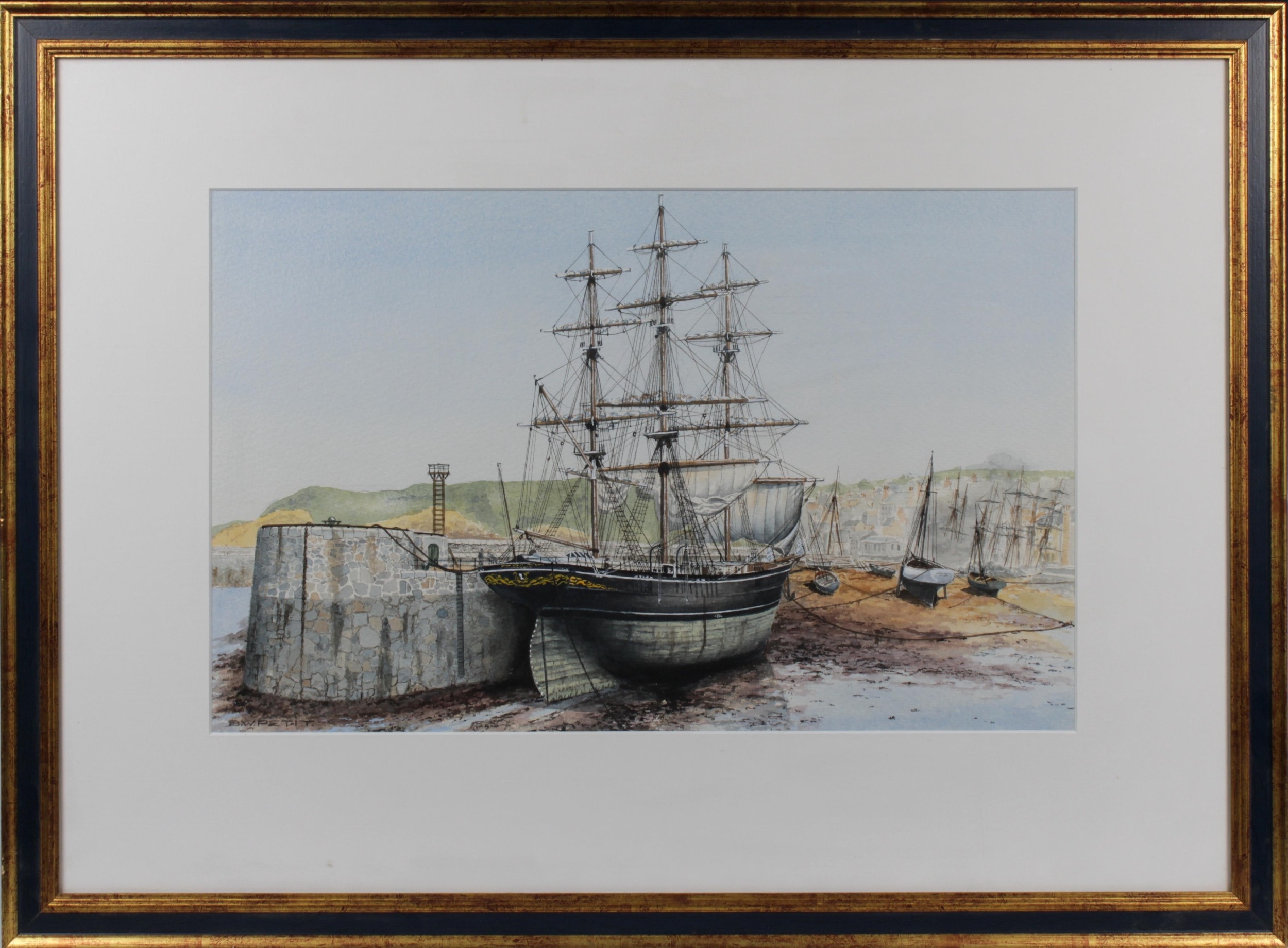B W Petit (British, 20th Century), Ships in the harbour at low tideSigned, watercolour, 31.75cm x 51cm