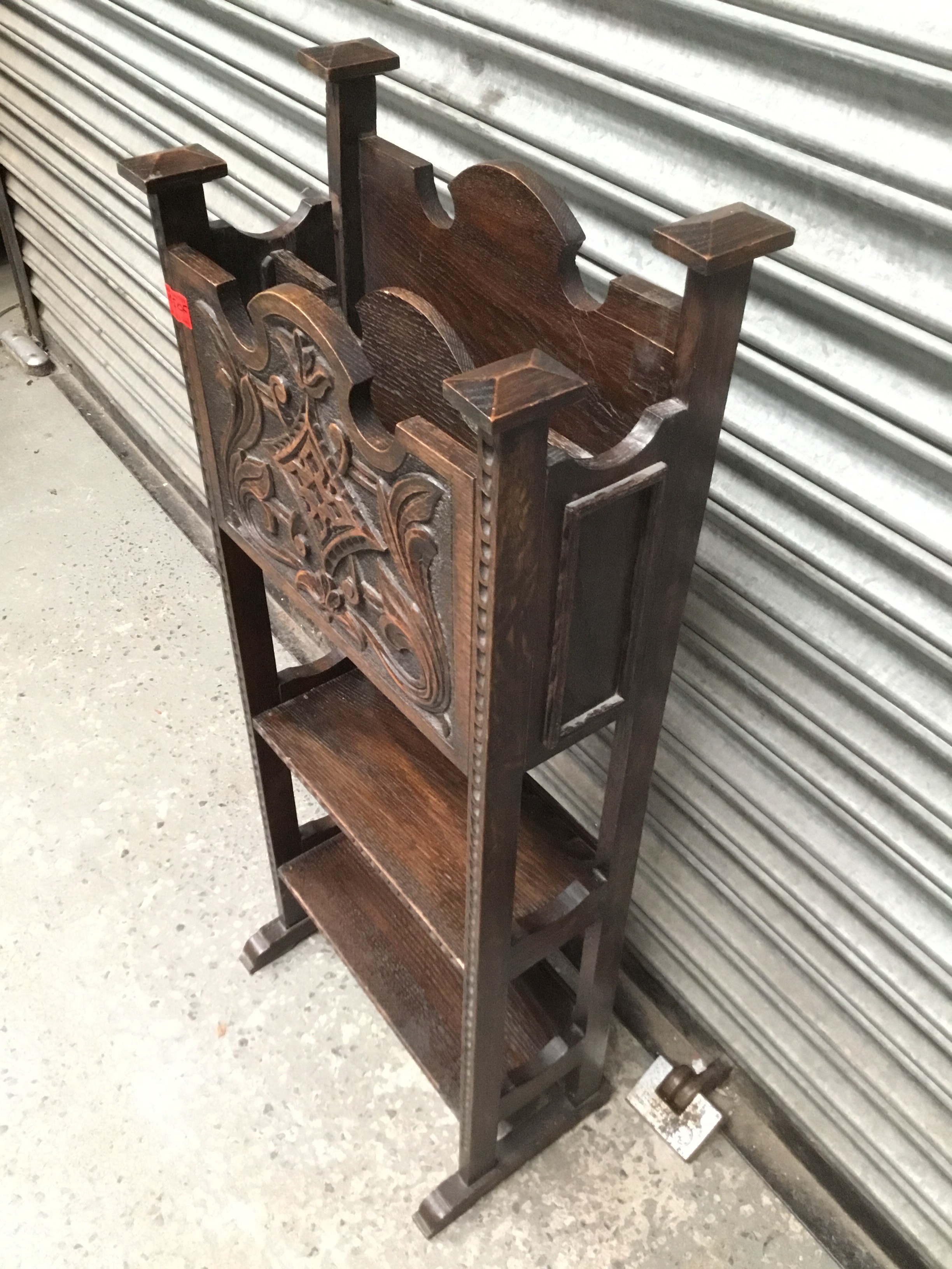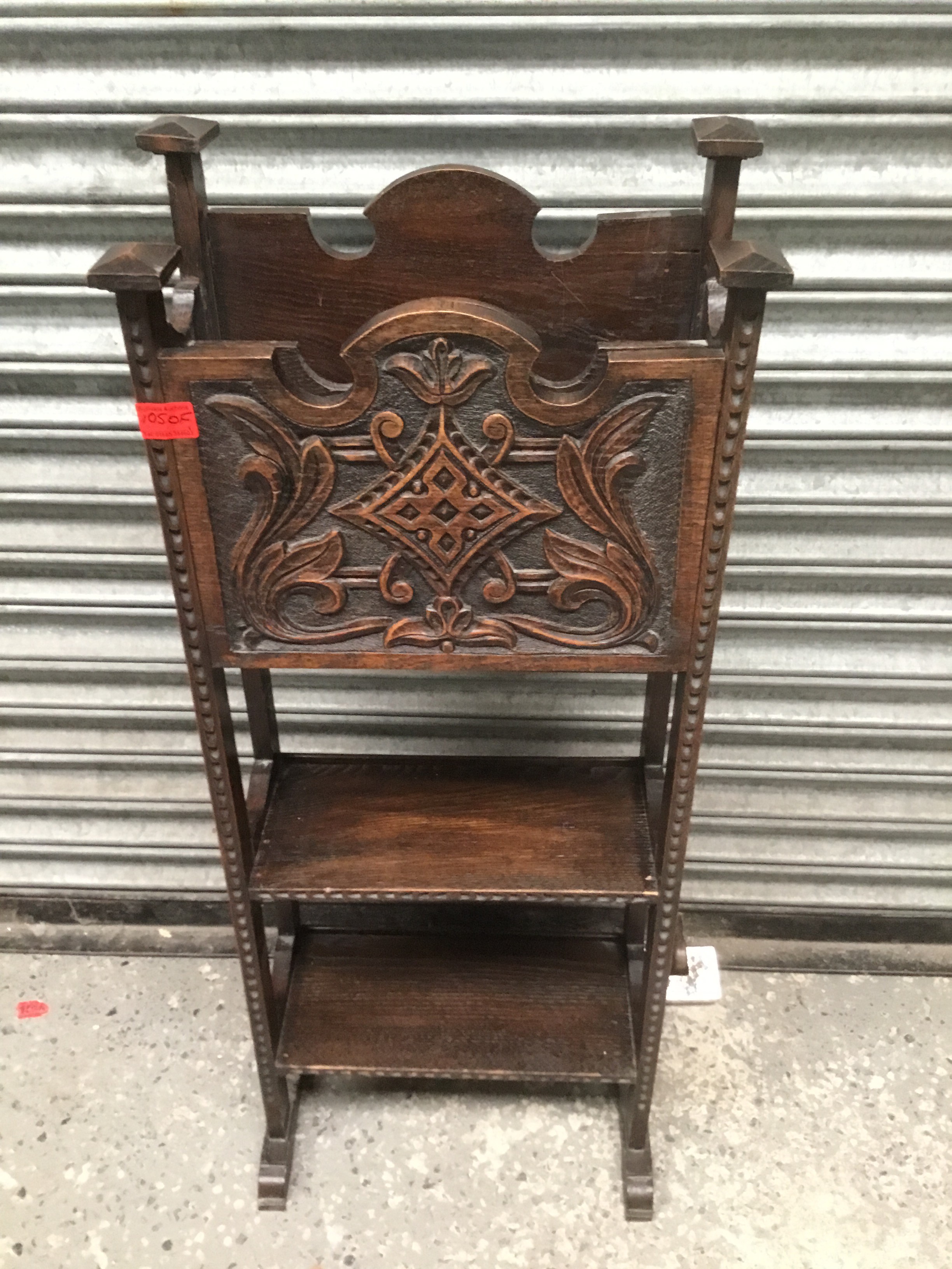 Antique arts and crafts craved magazine rack in oak