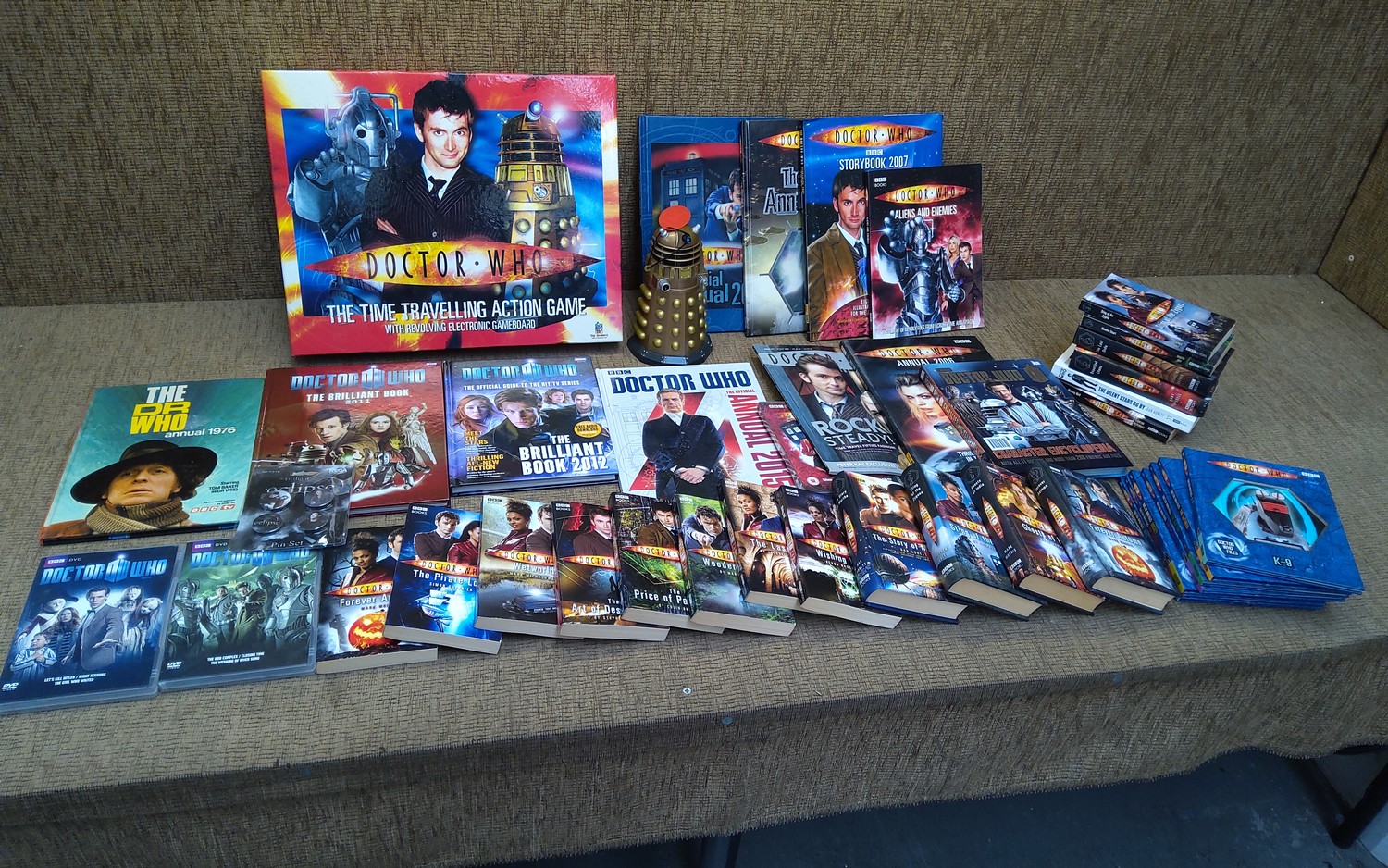 Quantity of DR Who books, DVD's and game.