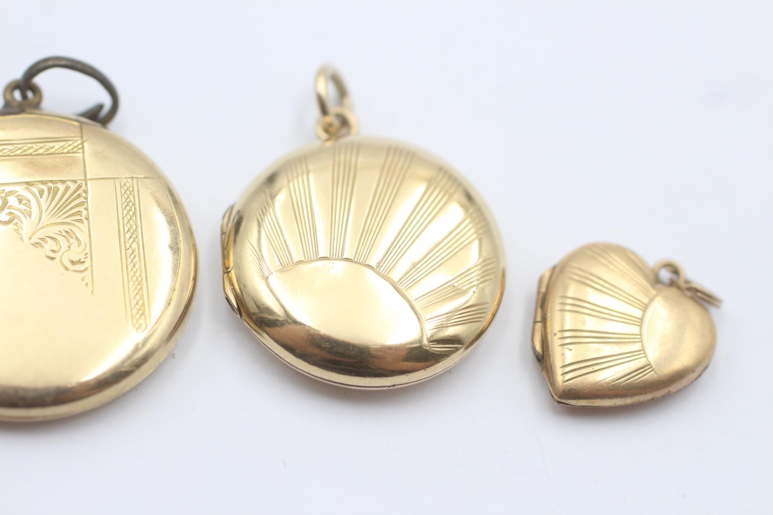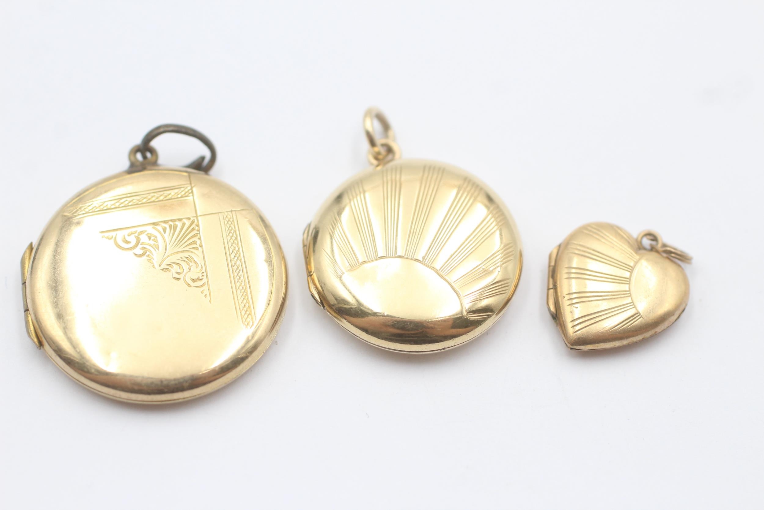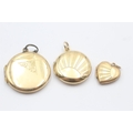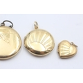 3 X 9ct Back & Front Gold Vintage Etched Lockets Inc. Hearts & Round (10.3g)