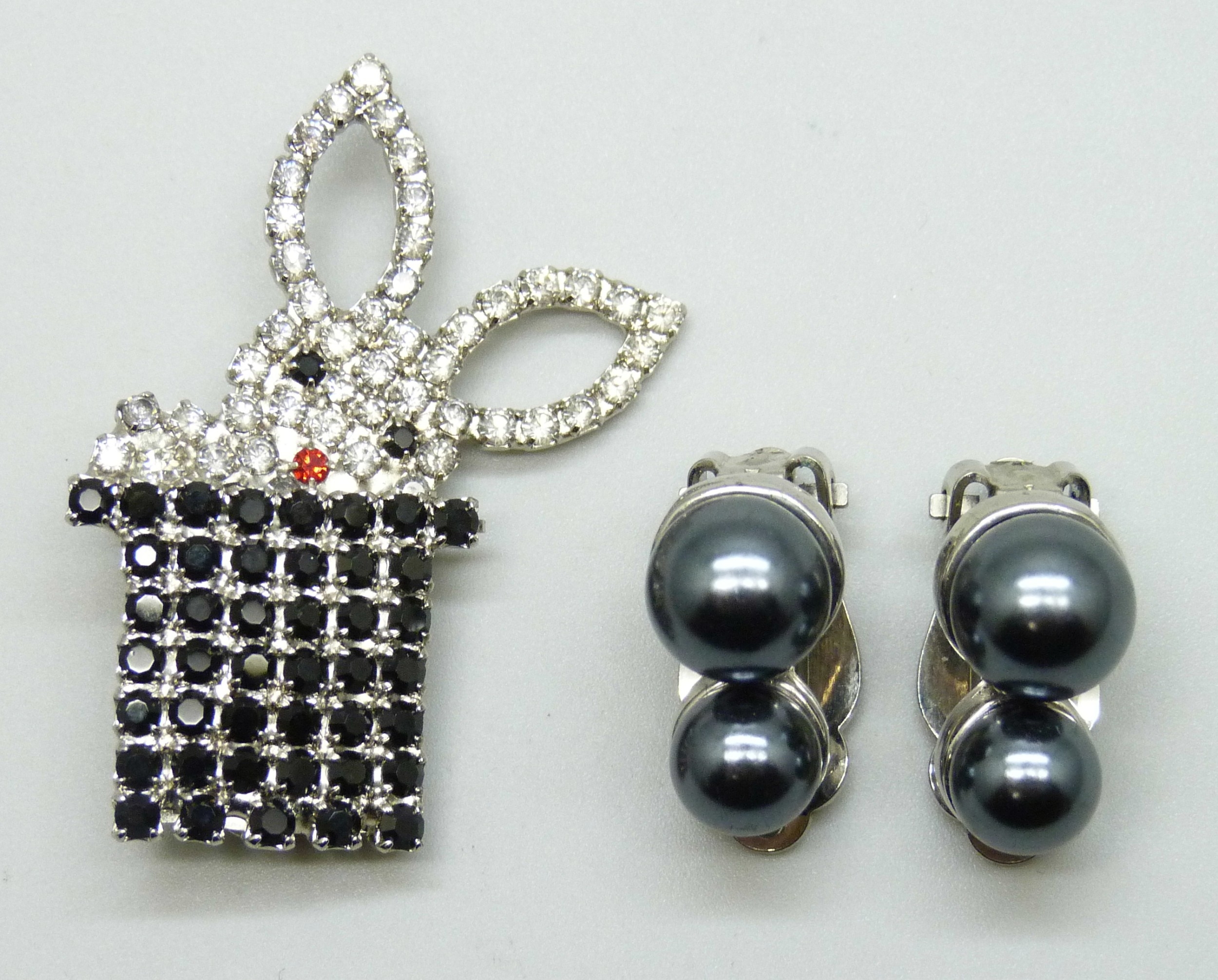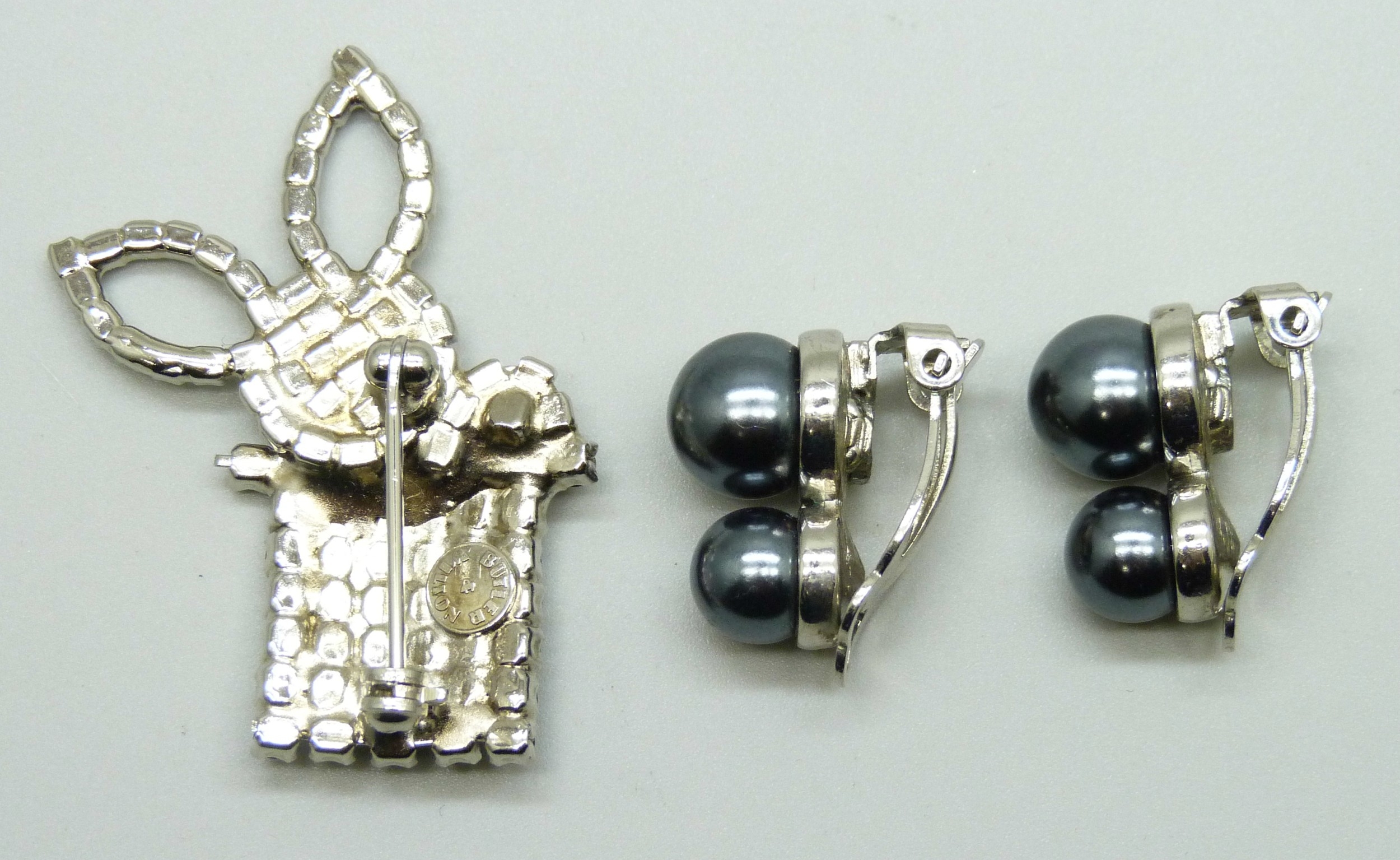 A Butler and Wilson brooch, 4.3cm, and a pair of Butler & Wilson faux pearl earrings