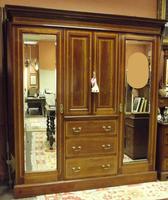 Edwardian mahogany sideboard, raised back, three top drawers over double cupboard with a single cupboard to either side, on short turned supports, maker Lamb of Manchester, No 44851, 72in, wide.